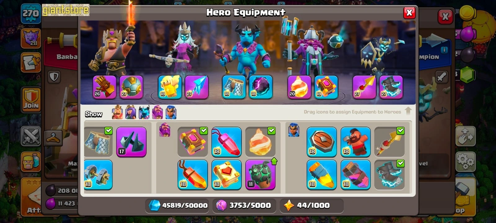 Big sale🔥TH 17 98% MAX🔥max heroes🔥max pets🔥max troops☠️4 max epic equipment⚒️6 builder’s⚡️all supercharge defense⭐️537 cwl medal✅cn on