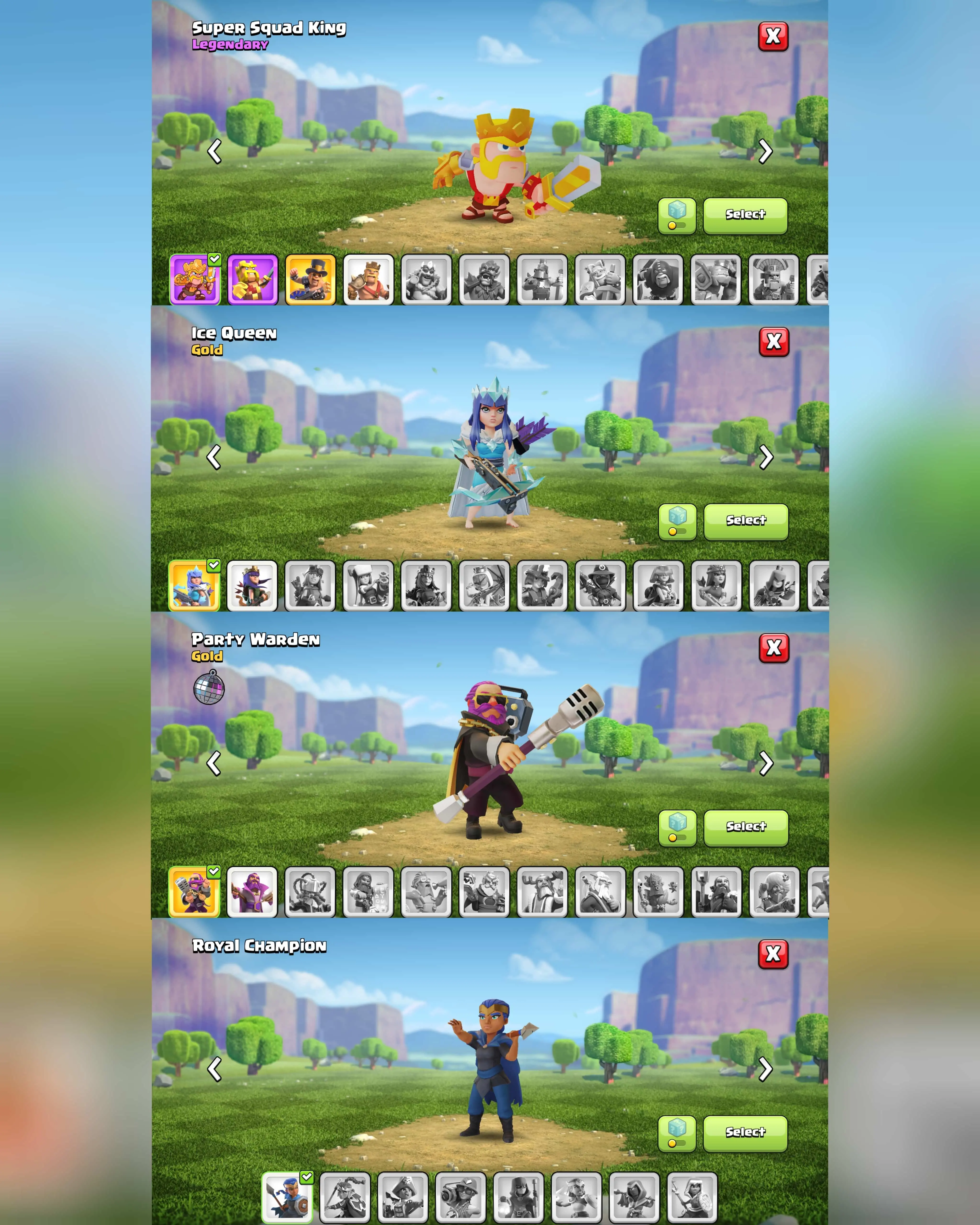 C079 TH13 PIXEL SCENERY ⸱ XP176 ⸱ 160 GEMS ⸱ CN 1500 GEMS ⸱ BK65 SKIN3 ⸱ AQ73 SKIN ICE QUEEN ⸱ GW48 SKIN PARTY WARDEN