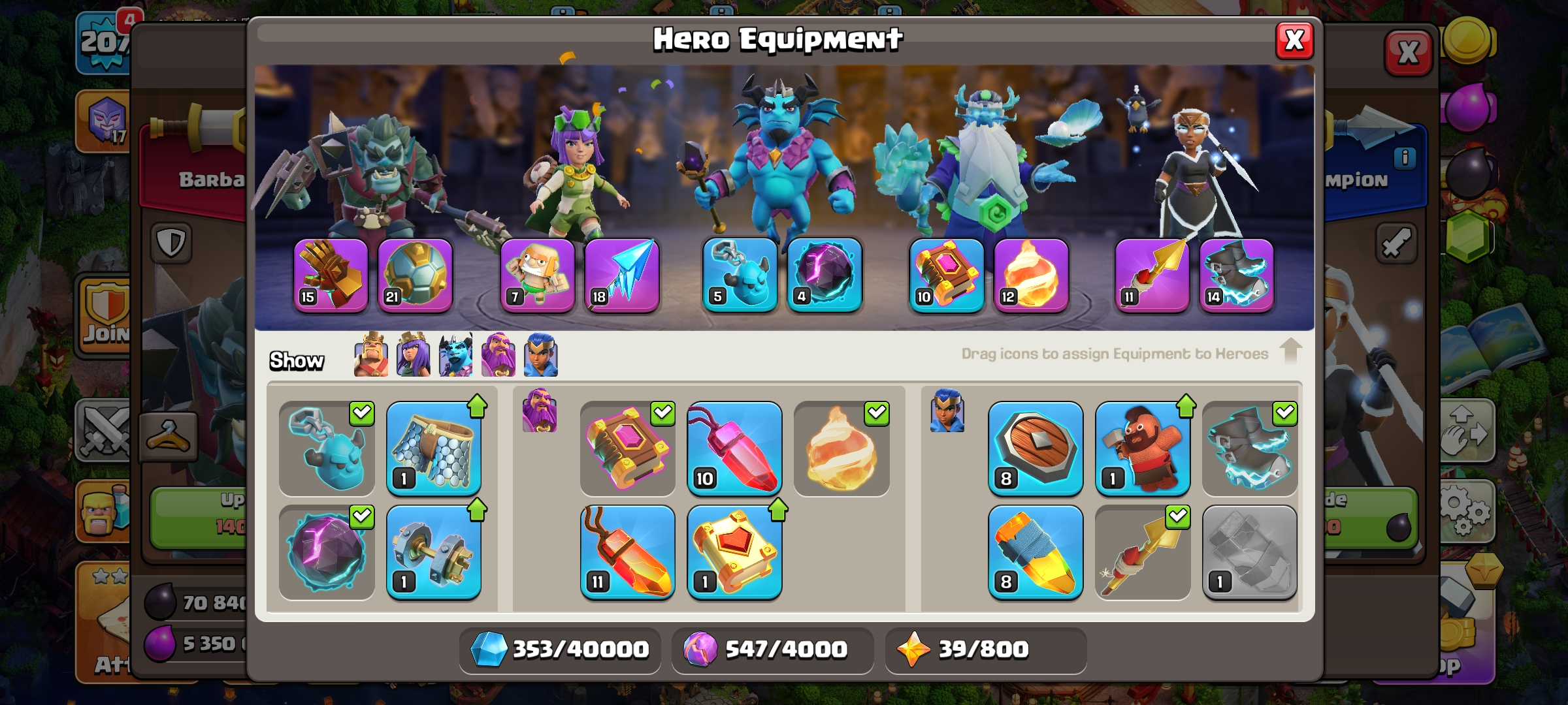 CC-80 TH15/LV 206 [ 7 Epic Equipments ] Heroes 71/80/52/55/30 | 9 Hero Skins | Good Skins, Scenery & Equipments