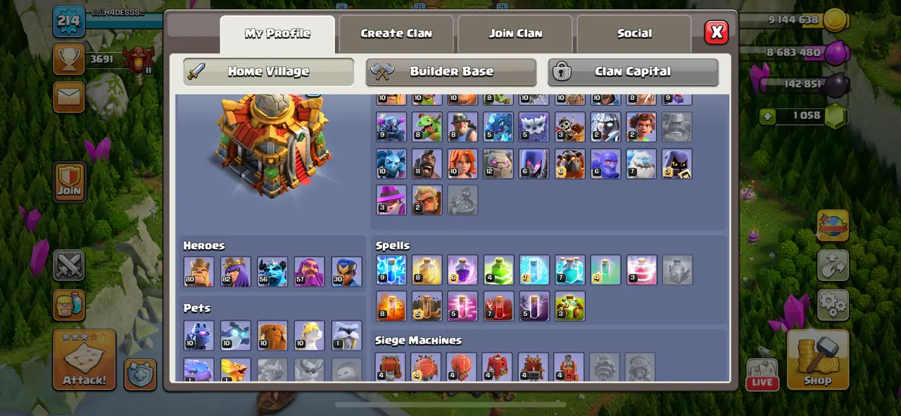 🔥 [-CHEAPEST-] 🔥 TH 16 SEMI MAX 🔥 XP 214 [80-82-56-57-30]🔥5 EPIC EQUIPMENT🔥AVAILABLE RENAME🔥HIGH LVL OF HEROES🔥1900++ WARSTARS🔥FULL ACCESS & GUARANTEE🔥[F1472]