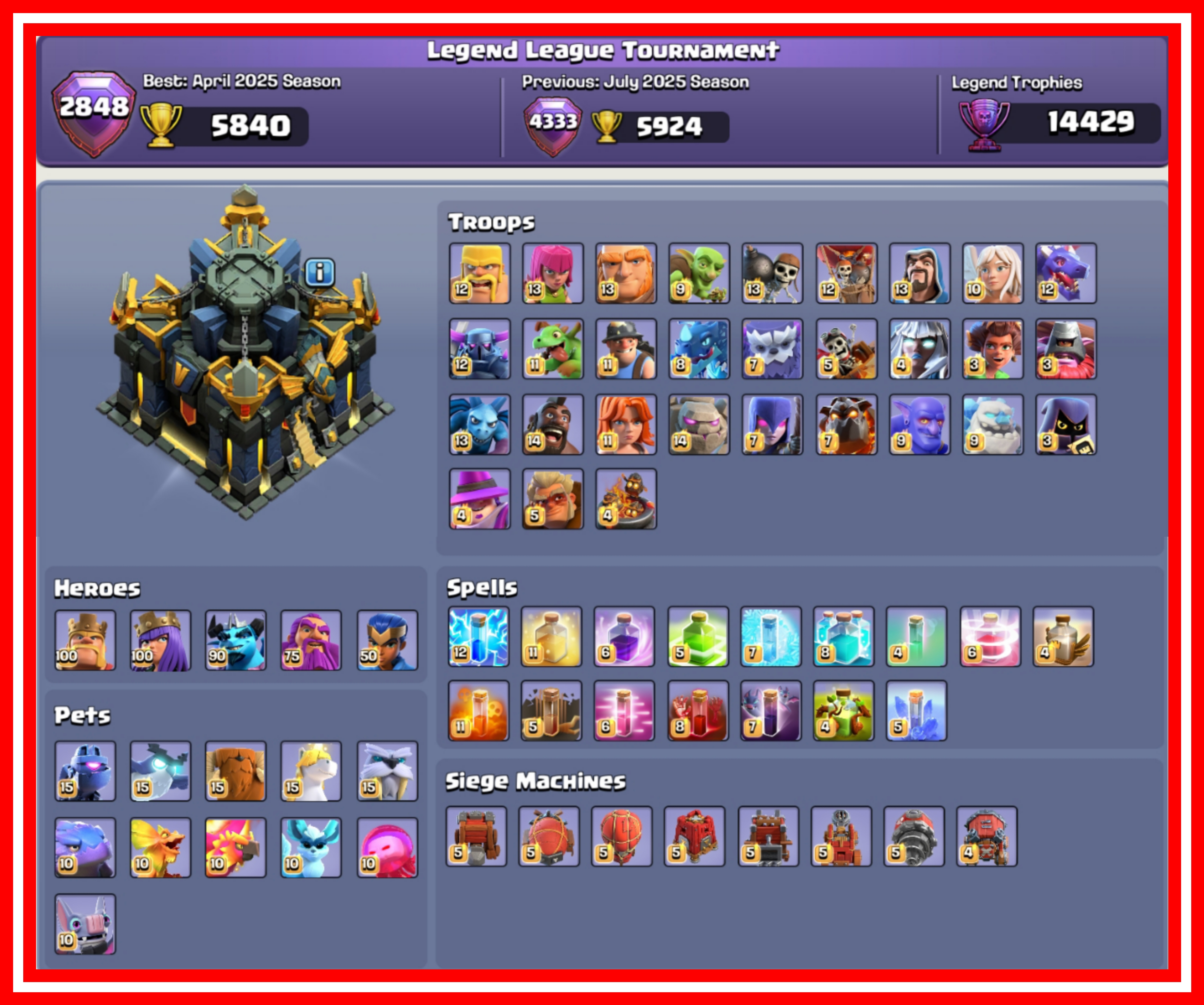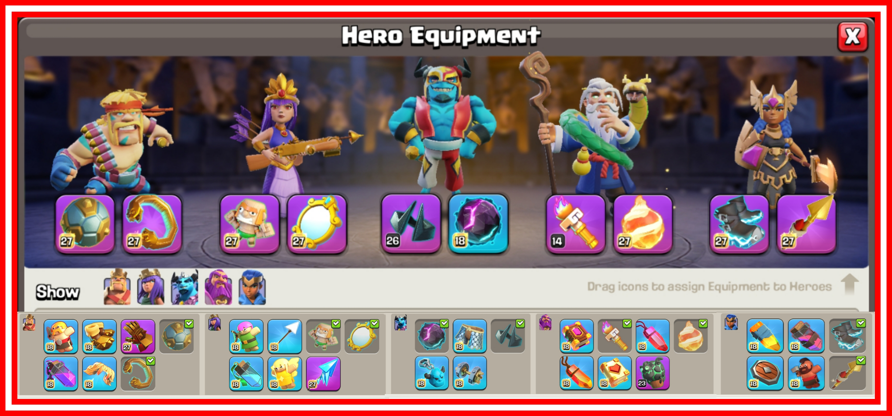 CLASH OF DRAGONS SCENERY 🚨 42 PREMIUM HERO SKINS 🔥 30 MAX EQUIPMENTS ✨️ [10 EPIC EQUIPMENTS MAXED] 😱 TH 17 MAXED OUT 🐲 1790 CWL LEAUGE MEDALS STACKED 🌟 100% MAXED HEROES & LAB 🔥 3x PAID SCENERYS 🍀 2848 GLOBALLY RANKED 🥶 FREE NAME CHANGE ✨️