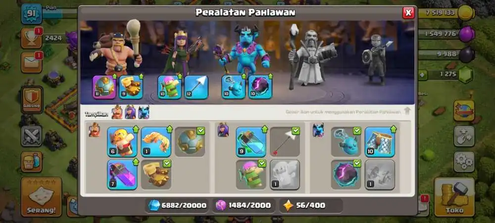 #EL 3727⚡TH 10 ALL MAX EX HERO AND 1K GEMS⚡LVL 91🛡KING 35🛡QUEEN 37🛡NC FREE+MANY MAGIC STUFF+MANY LEAGUAE POIN🛡SAFE ACCOUNT⚡