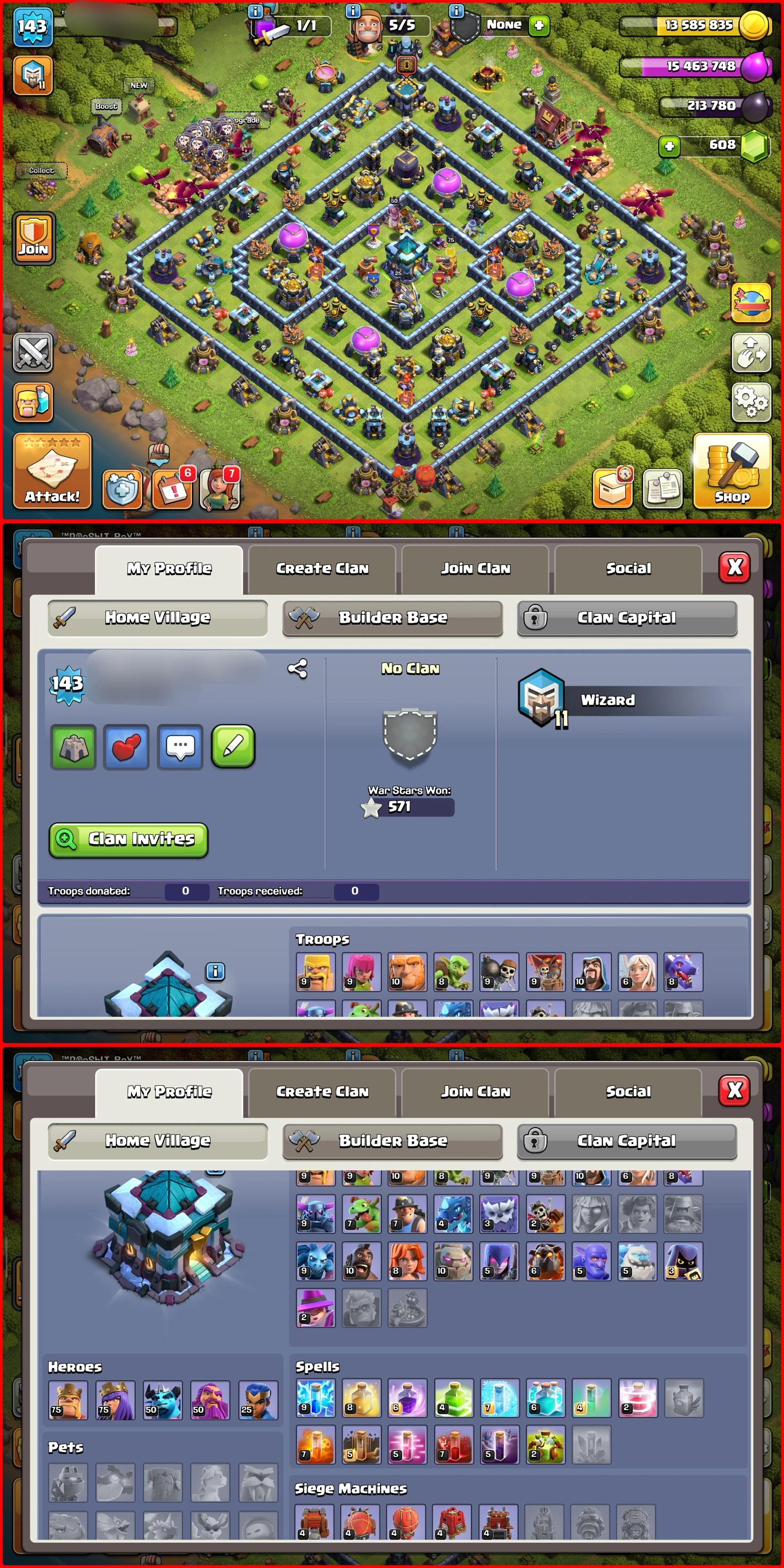 ENORMOUS TH13 MAX ID w/ MAX TROOPS & DEFENSES| 75/75/50/50/25 | STRONG HERO ABILITIES | 500 NC | RB290