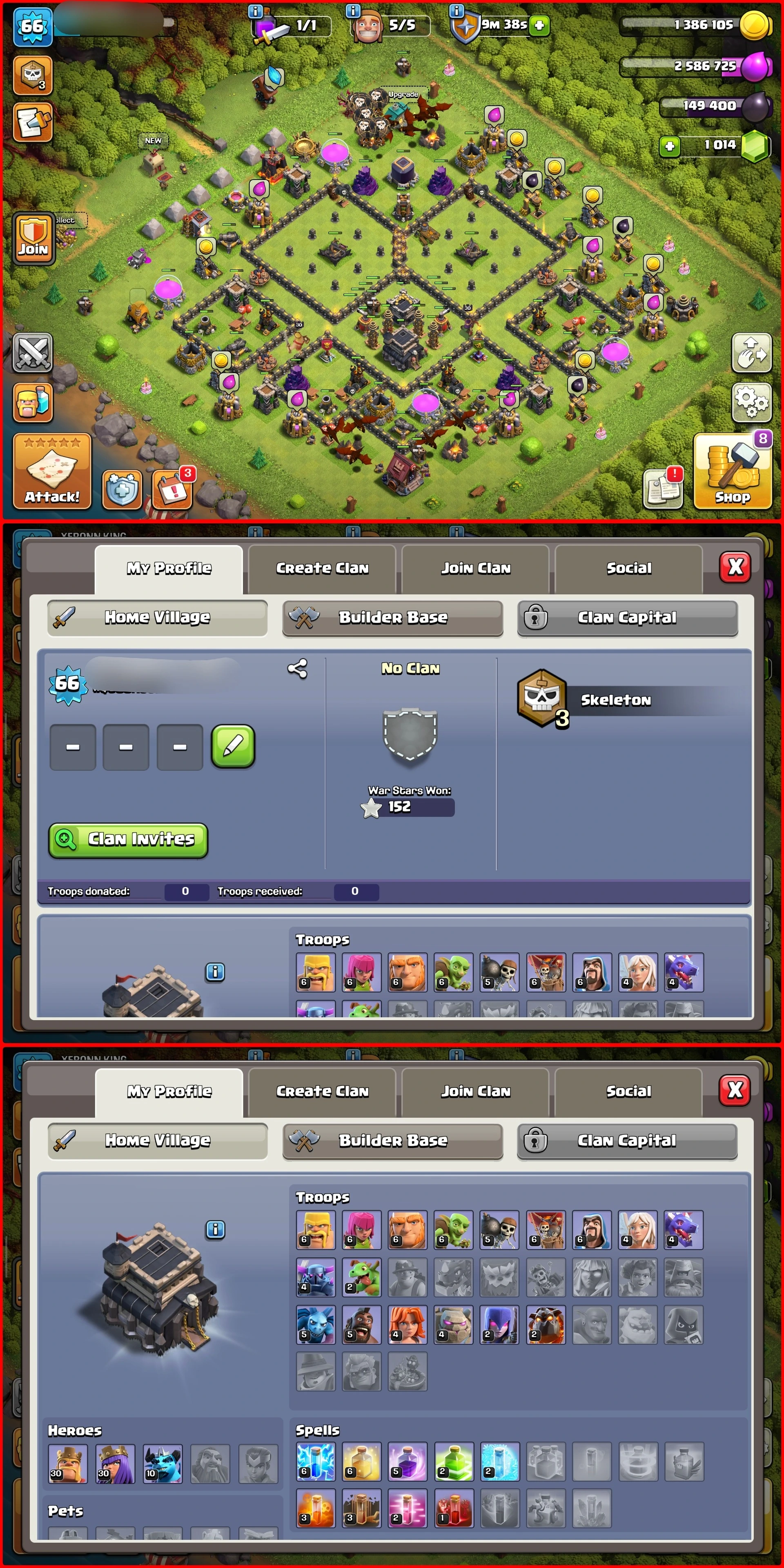 ENORMOUS TH9 PURE MAX I'D w/ 1K+ GEMS |Piled 405 CWL Medals & 3 Epics Avbl | 500 NC | READY FOR TH10 | RB317