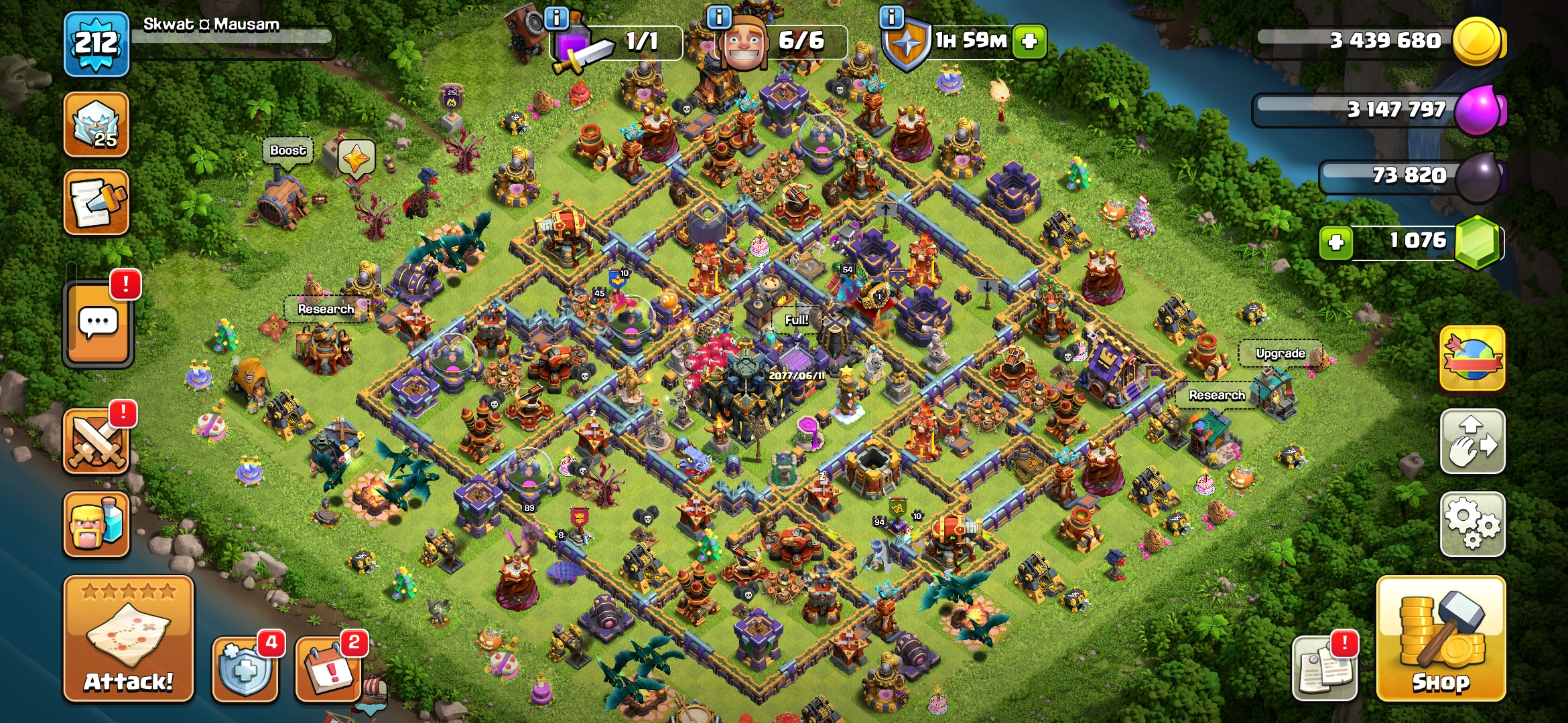 H🔥XP-212✓✓BEST TH17-NEAR MAX DEFENCE✓✓MAX LIKE HERO🥳[89-94-70-45]MAX EPICS[GG-23!SB-MAX!FA-21!AF-MAX!RS-15]NC-YES!650 CWL TOKEN✓✓LOTS OF MAGIC ITEMS