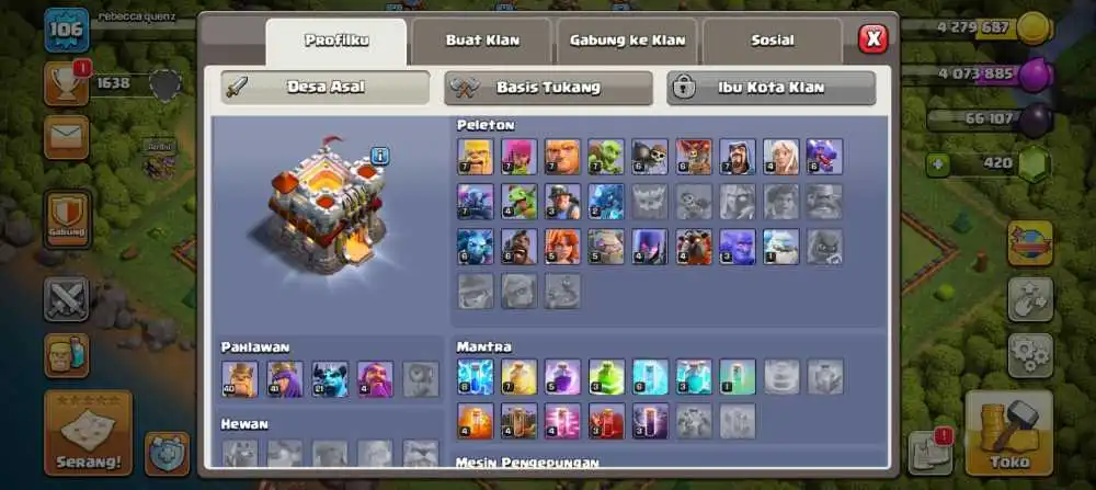 IT 45⚡TH 11 GOOD DEFF AND 5 BUILDERS⚡LVL 106🛡KING 40🛡QUEEN 41🛡WARDEN 4🛡MANY MAGIC STUFF+MANY LEAGUAE POIN 🛡SAFE ACCOUNT ⚡