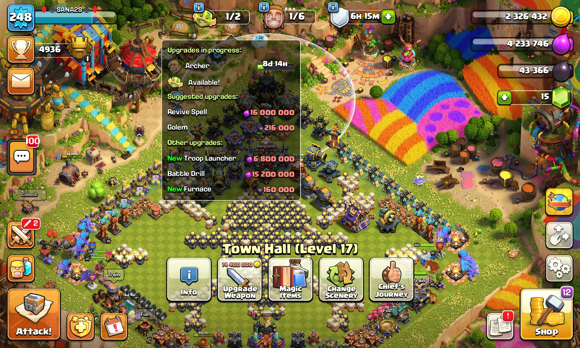 ๐ฏ JUSTICE SCENERY ๐ฏ TH 17 MAX ALMOST ๐ฏ 5 HEROES MAXED ๐ฏ 15 EQUIP MAXED ๐ฏ DEFENCE ALMOST MAXED ๐ฏ PROFILE MAXED TYPE ๐ฏ INSTANT EMAIL PASS ACCESS ๐ฏ CC23