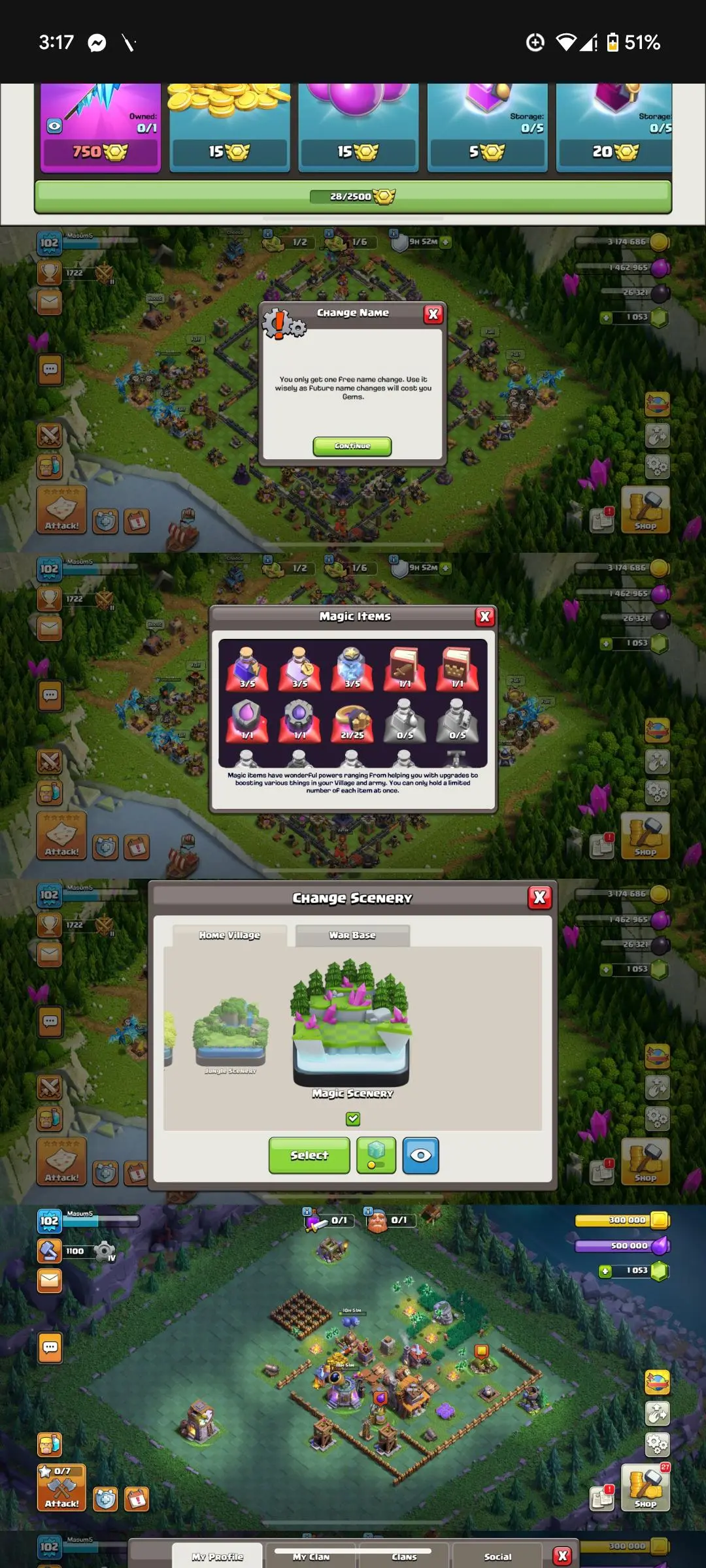 NAME CHANGE FREE | TH16 RARE MAX ACCOUNT | GIANT GONGLET | HERO'S: 33-33-42-23-6 | MAGIC SCENERY | WHITE WALL | GEMS 1000+ | XP- 102