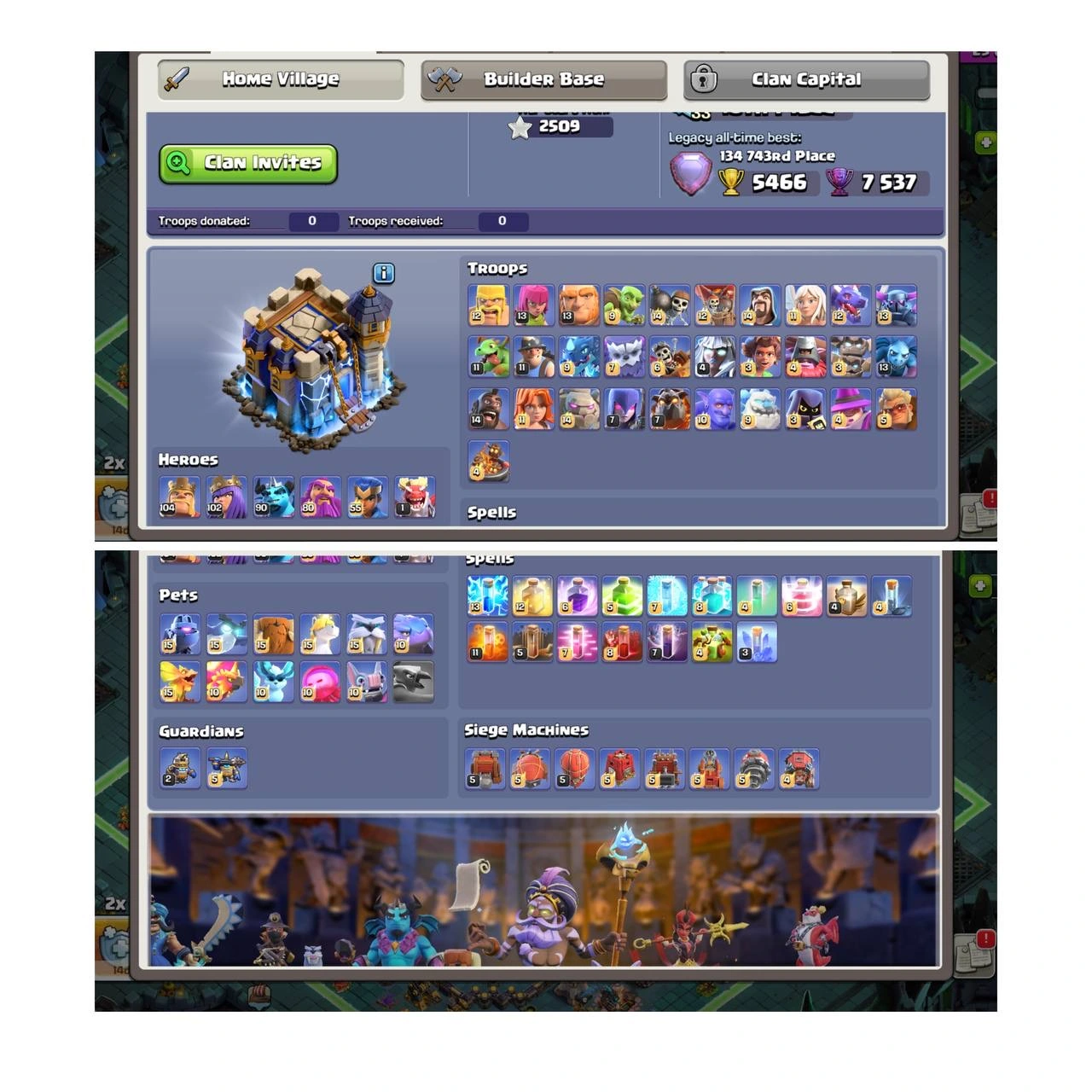 OFFER HURRY❤️cheapest TH18 80% Max [ 15 epic equipment max hero skins ]🔥th 18🔥heroes 104-102-90-80-55 /
