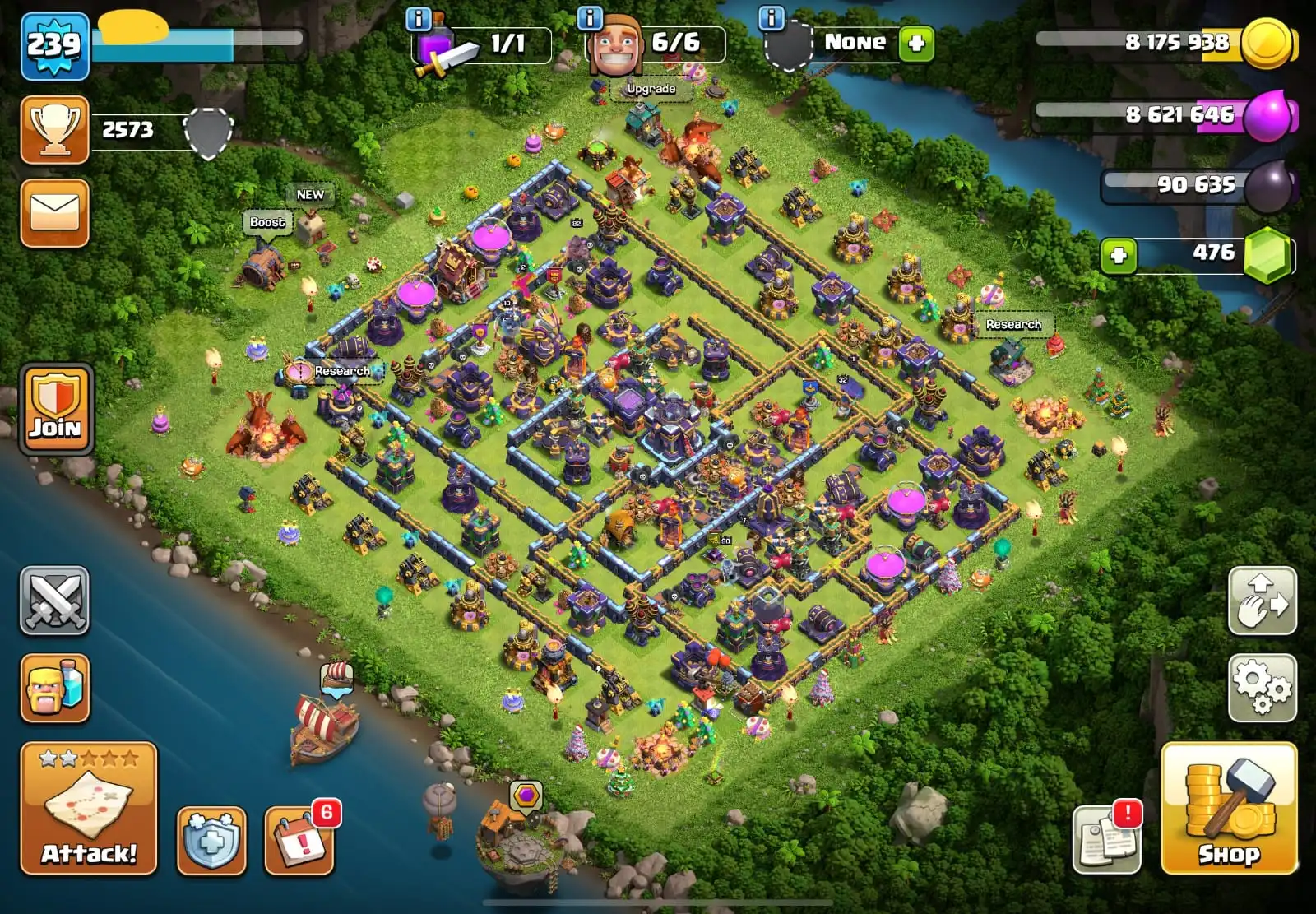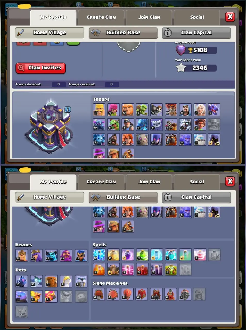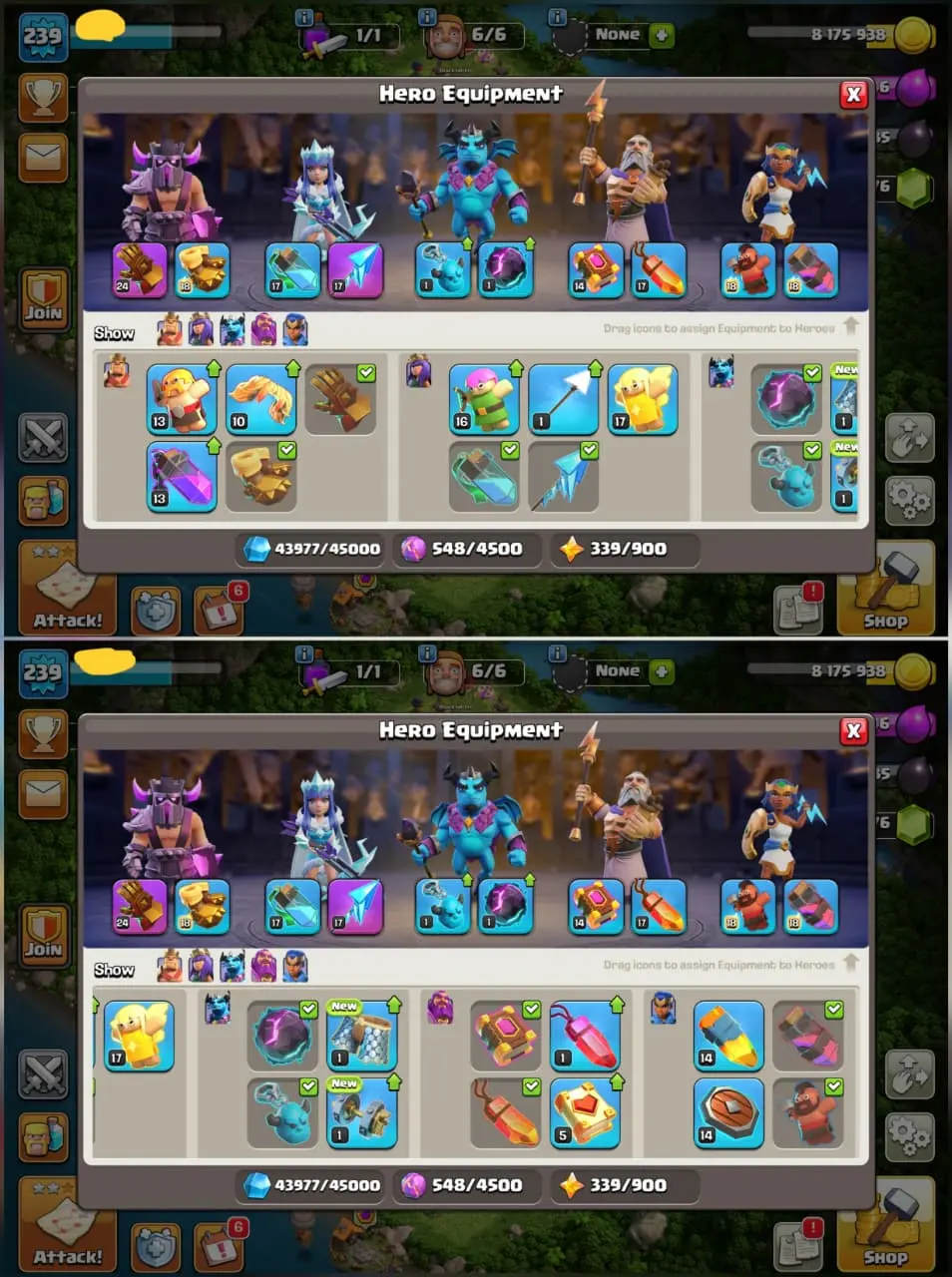 🏆 OVER POWER [6 HERO'S SKINS] TH15🎖️ XP 238 ⚙️ 5 EPIC EQUIPMENTS / 1 EPIC NEAR MAX 🛡️ MAX DEFANCE & ARMY 🏰 OVERPOWER BASE 💎 2646 GEMS📝1595 WAR STARS ⭐ HEROES:- BK83 AQ88 MP71 GW67 RC33