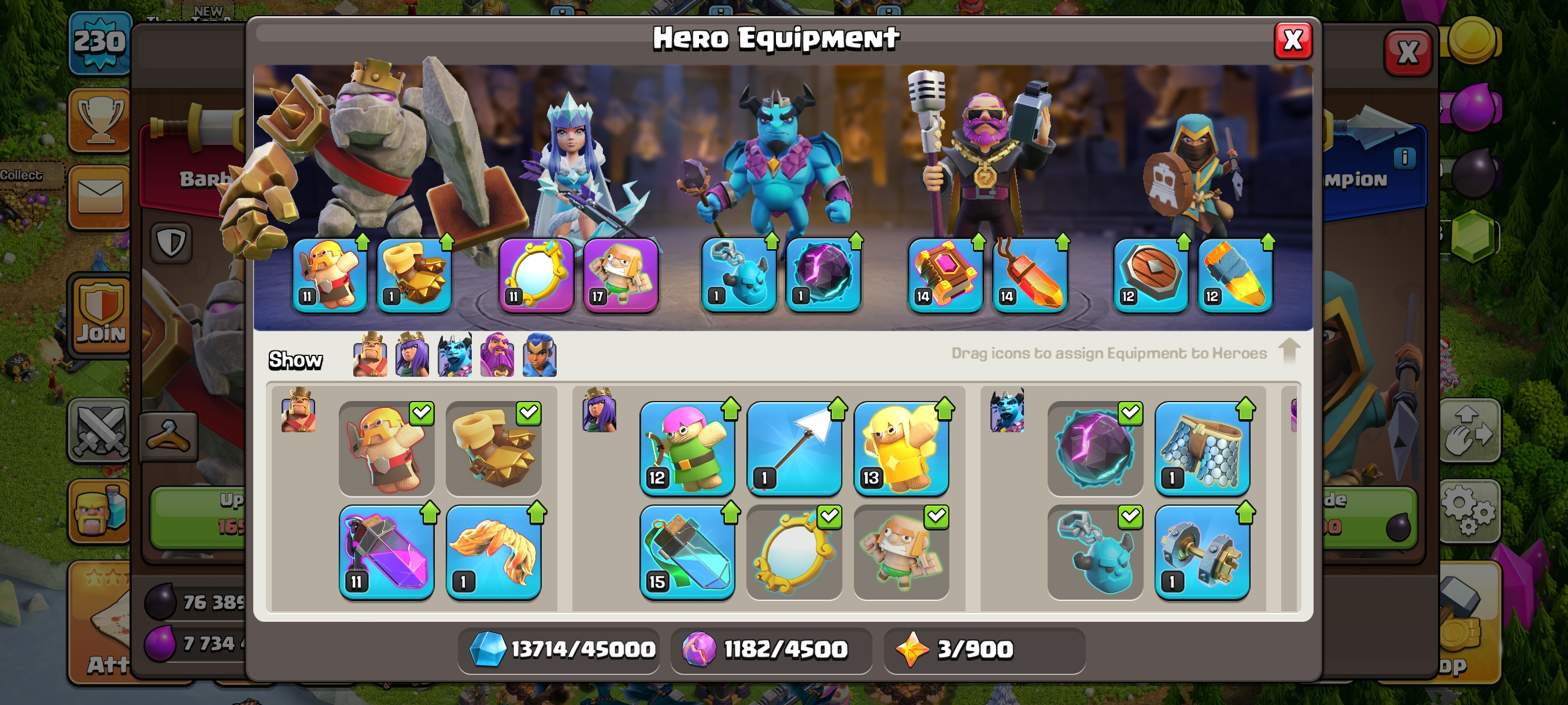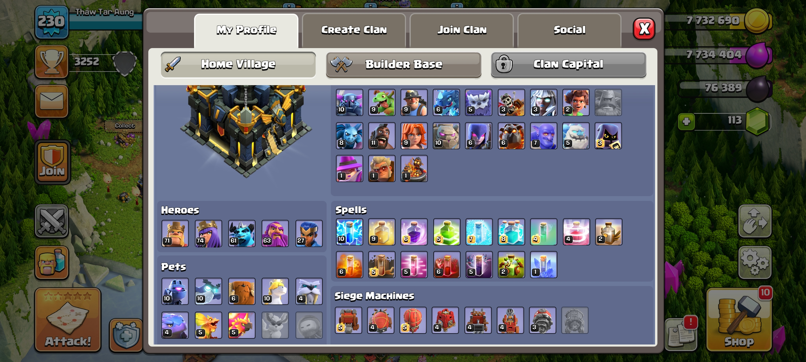 Perfect Deal-Th17 Same Max-Hero 71-74-61-63-27-Xp230-Magic Mirror-Acton Fighter High-10 Hero Skin-6 Builder-Nc 500