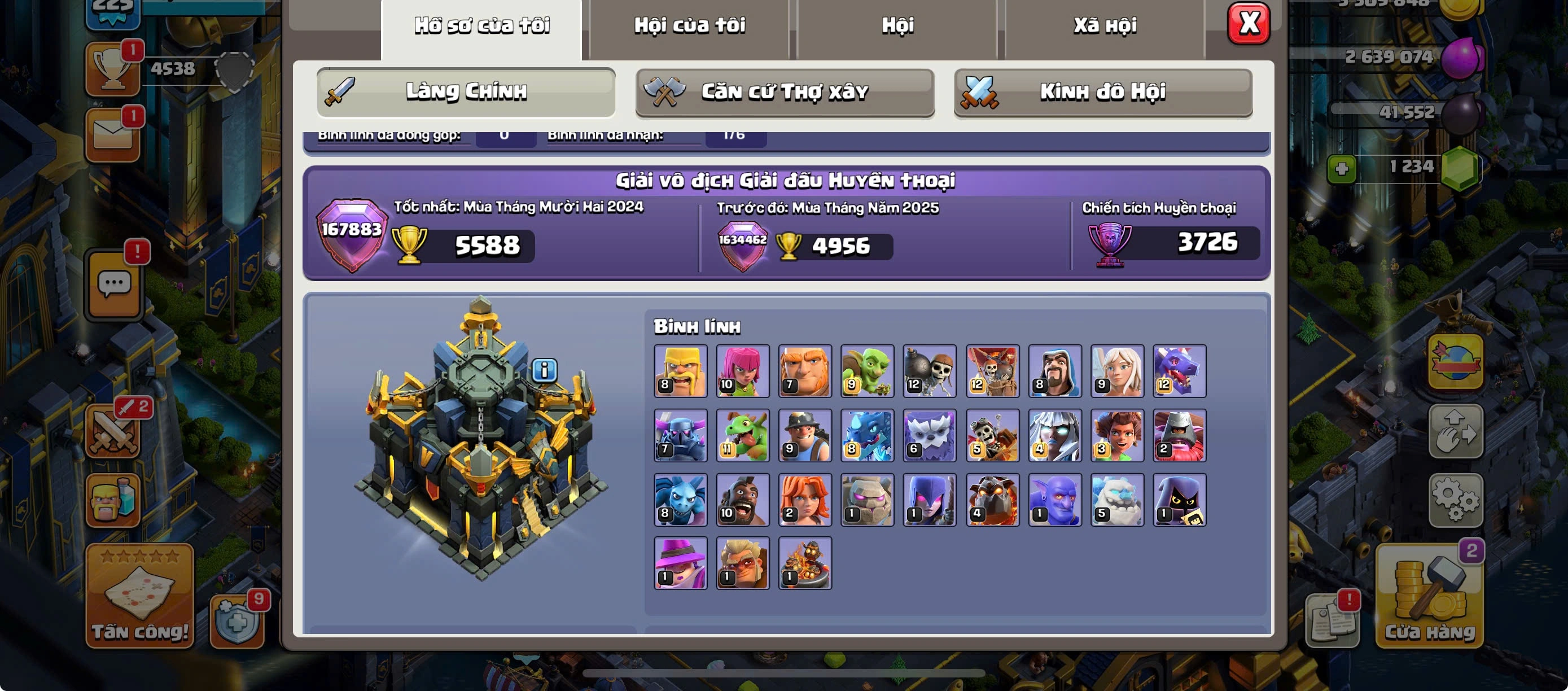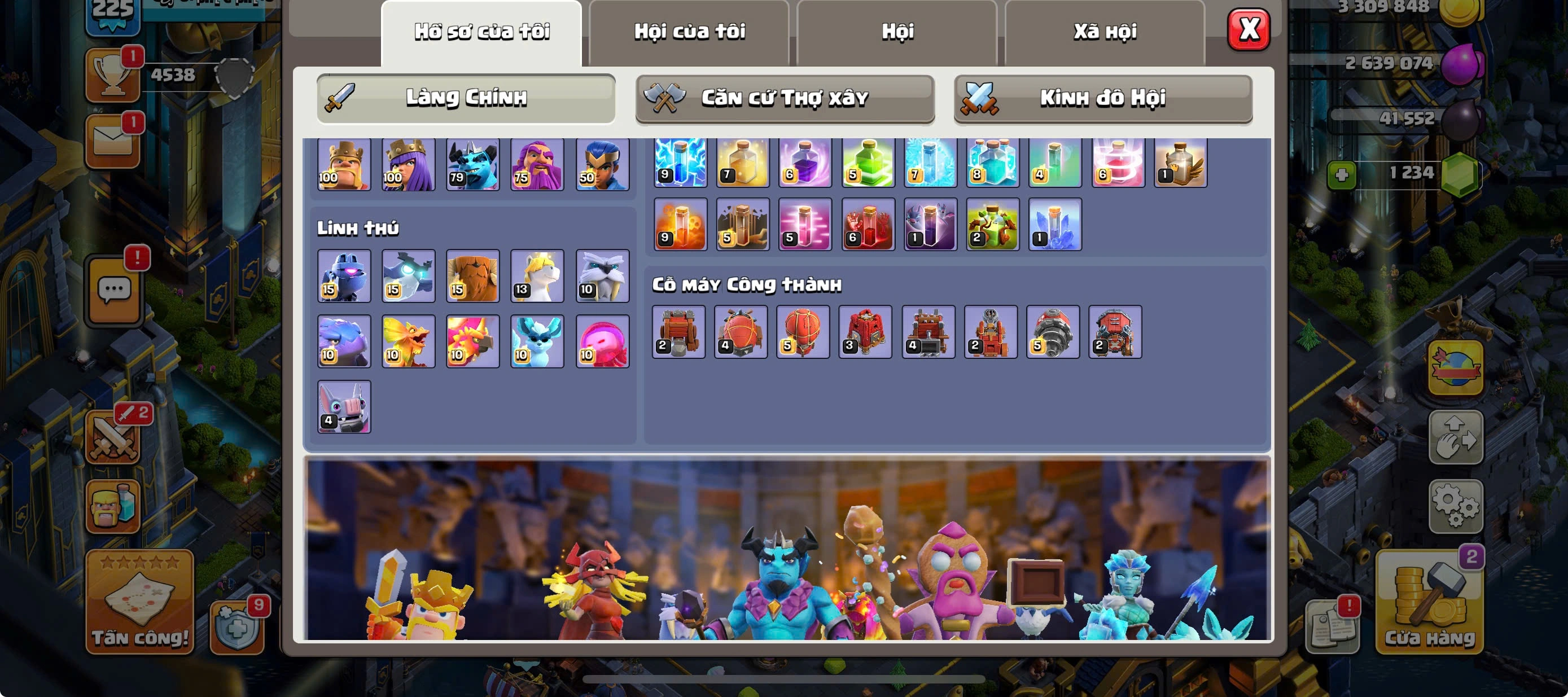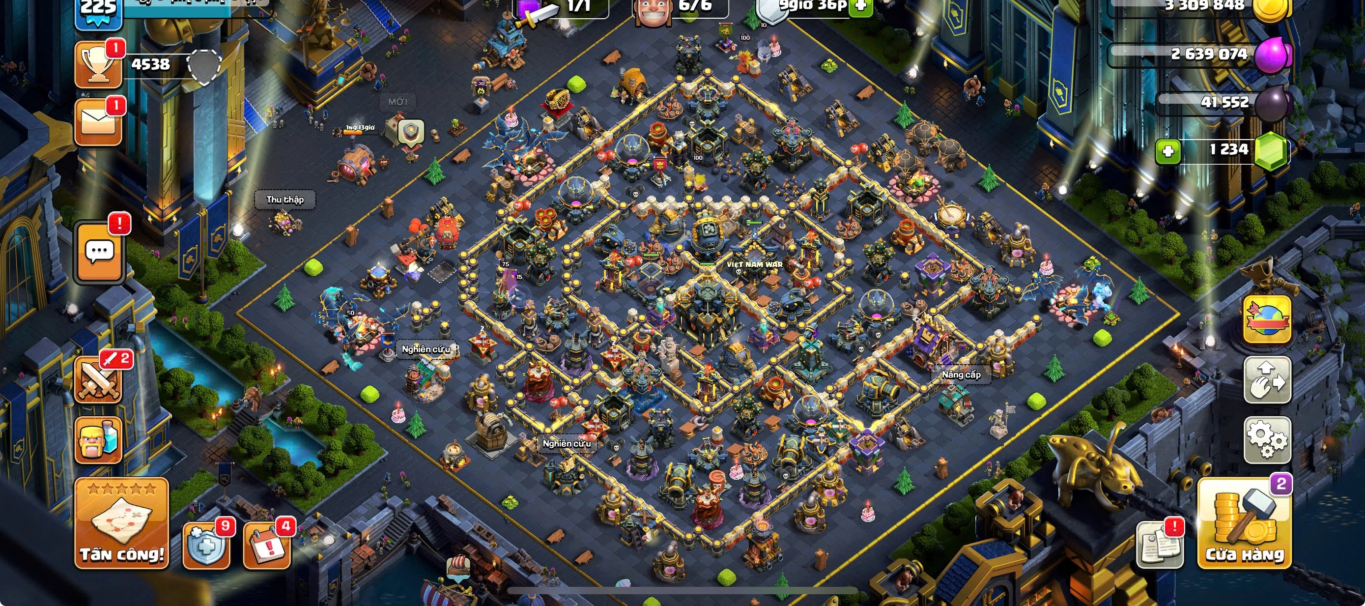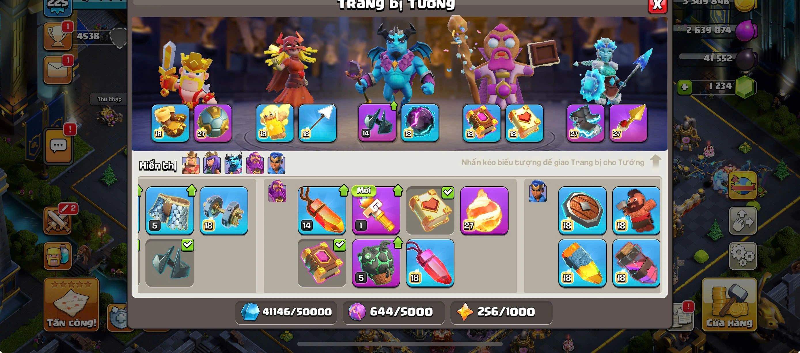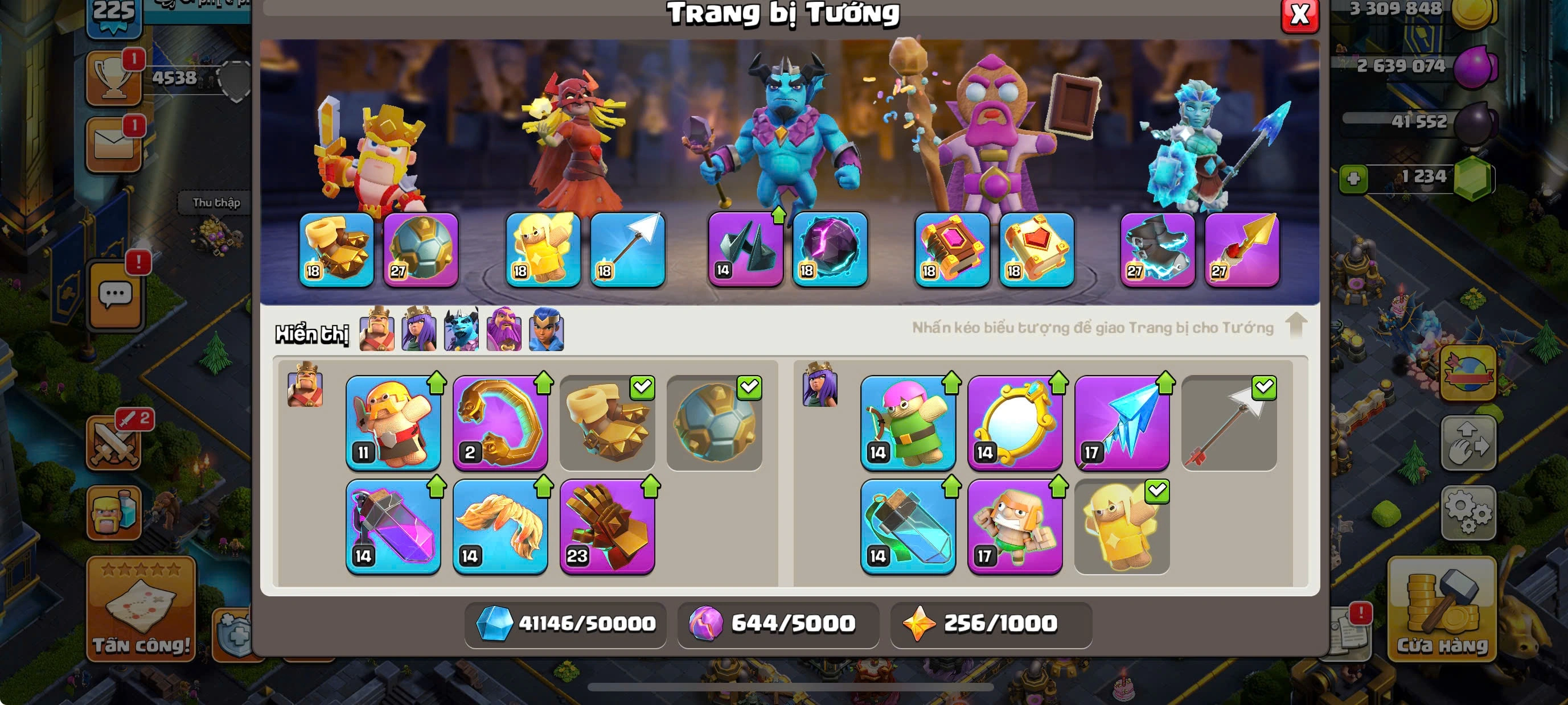 RARE TH17 MAXED -MAX 4 HEROES-MAX PETS AND TROOPS-FULL MAX EQUIPMENTS-MANY GOOD SKINS-2 SCENERY-NAME CHANGE 1000-469