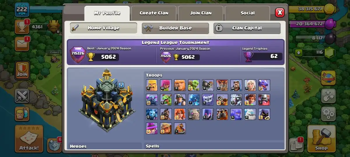 RARE🔥2 EPIC EQUIPMENT MAX🔥TH 17 MAXED DEFENCE🔥HEROES MAX 100-100-63-75-50 FULL EPIC EQUIPMENT🔥FREE CHANGE NAME🔥MAGIC & JUNGLE & CLASH A RAMA SCENERY🔥FULL ACCESS & GUARANTEED🔥