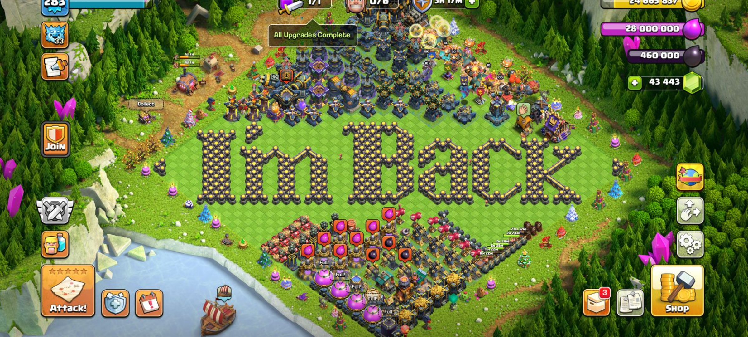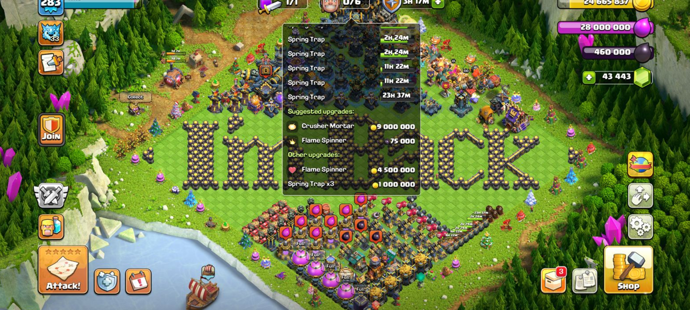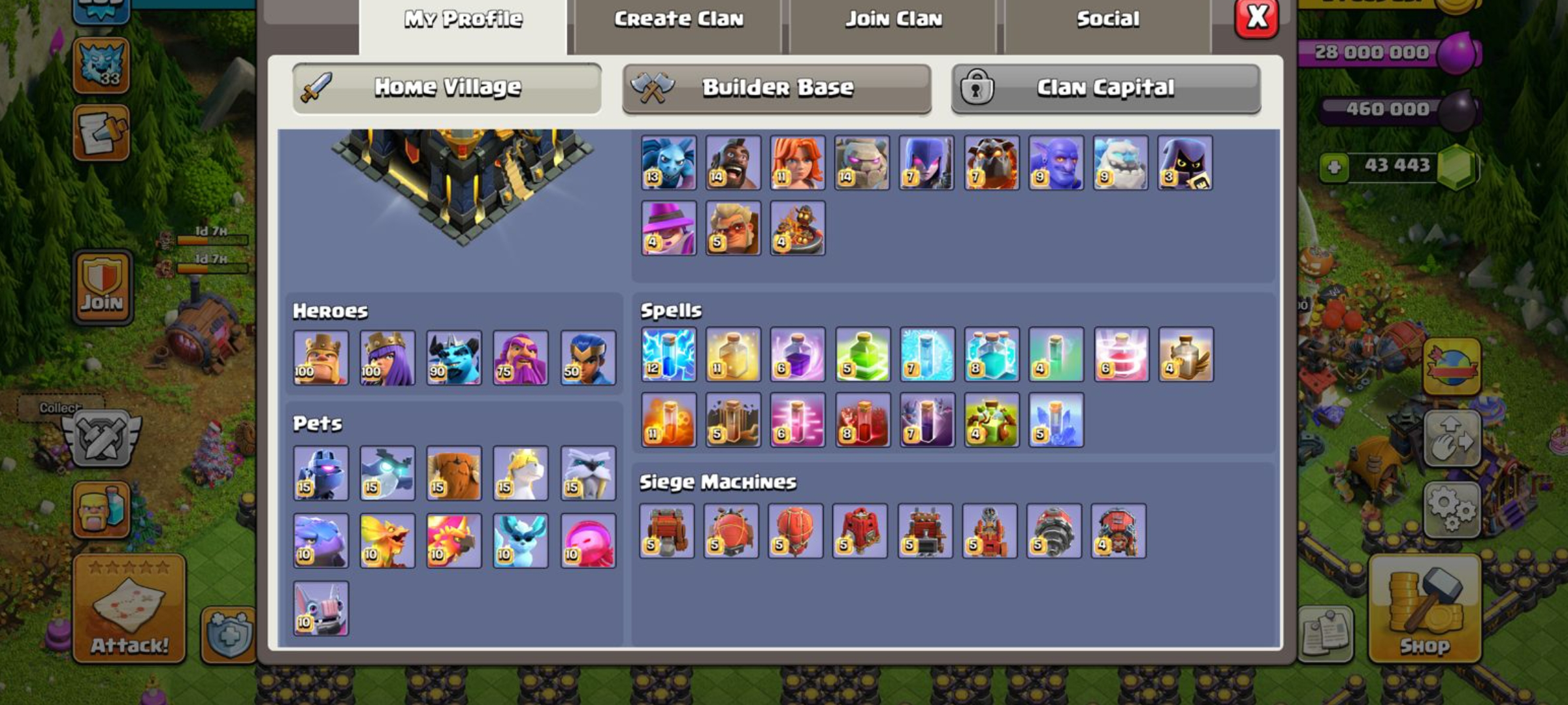 S43π TH 17 FULL MAX π 43000 GEMS π LEAGUE KING SKIN+2100 MEDALπ 5000 WAR STARπ ALMOST 10X EPIC MAXπ PROFILE FULL MAX π BOTH VILLAGES FULLY MAXED π INSTANT DELIVERY π