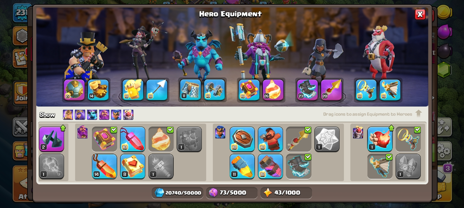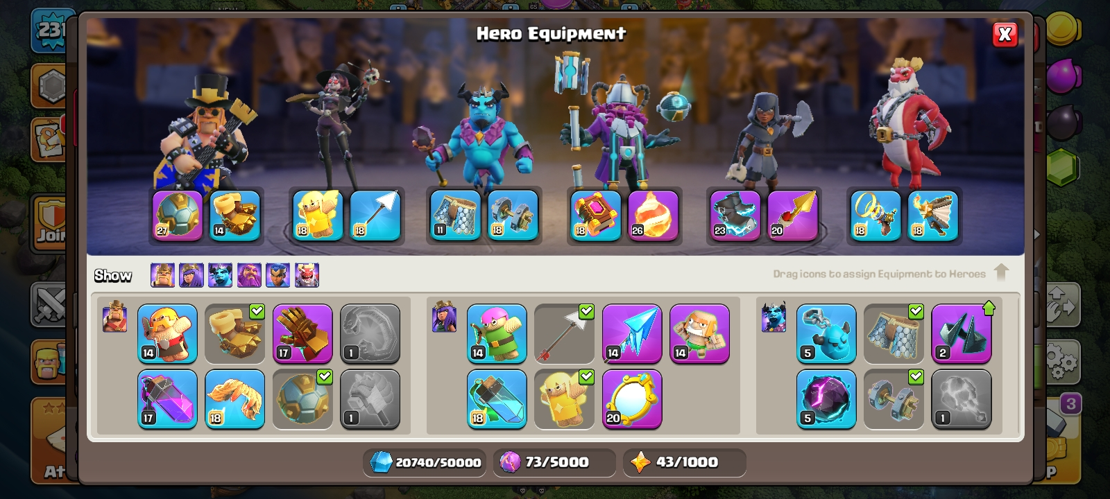 Sale✅TH 18 almost max🔥high heroes 86/94/71/65/50/6☠️9 epic equipment⚒️max builder’s base✅free name change⭐️439 cwl medal✅12 heroes skin