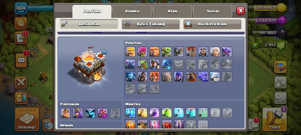 TH 11 XP 11 XP 104 HEROS 42-43-28-13- GEMS 2952| CHANGE NAME 500 GEMS | FREE CLAN LVL 10 | WALL GOOD | DEFENSE GOOD | INSTAN DELIVERY