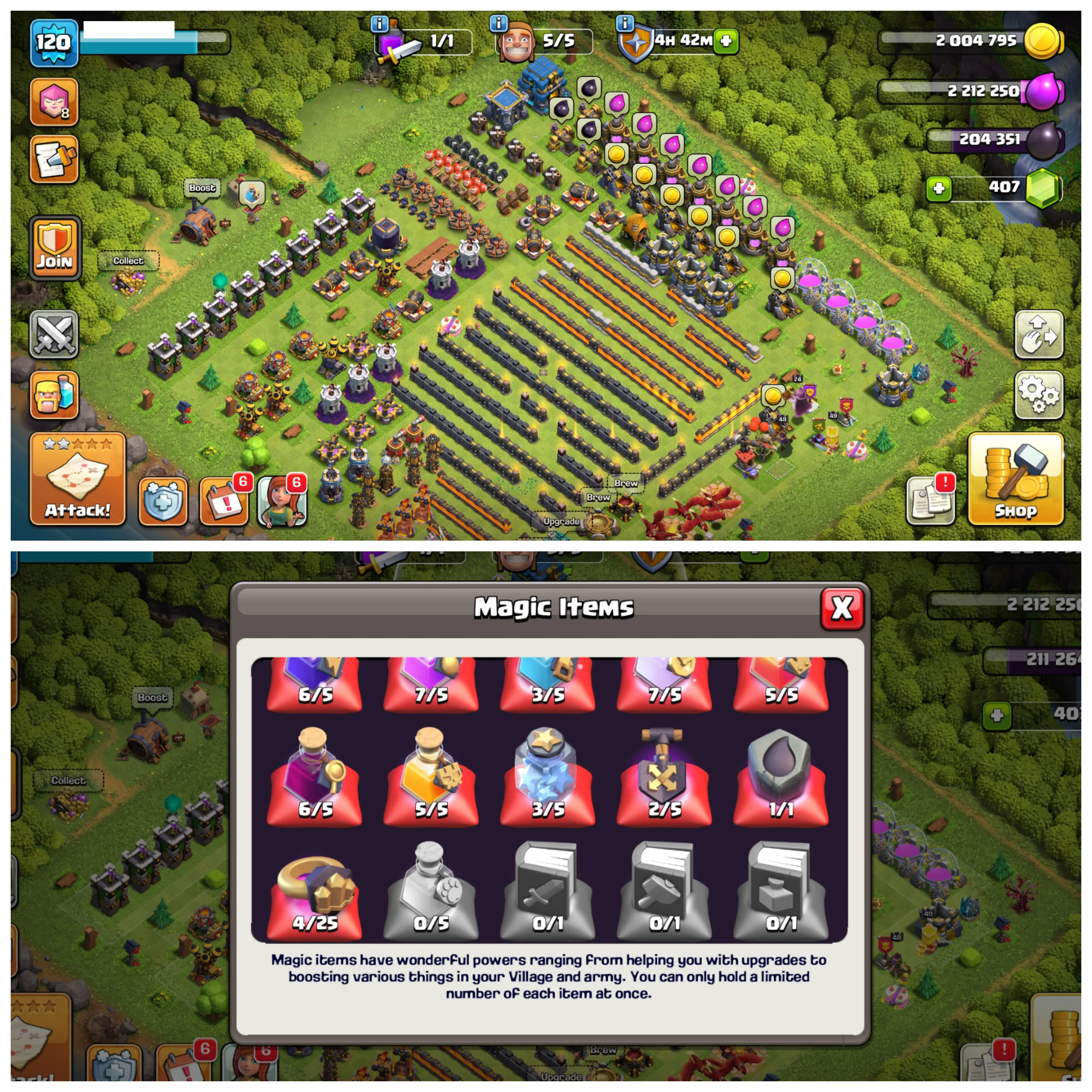 ⚔️ TH 12 Decent Account 🧠 XP 120 ⚒️ Heroes: BK49 AQ48 MP33 GW24 ⚗️ Nice Laboratory 🎁 Loaded Magic Items ⚡ Instant Delivery