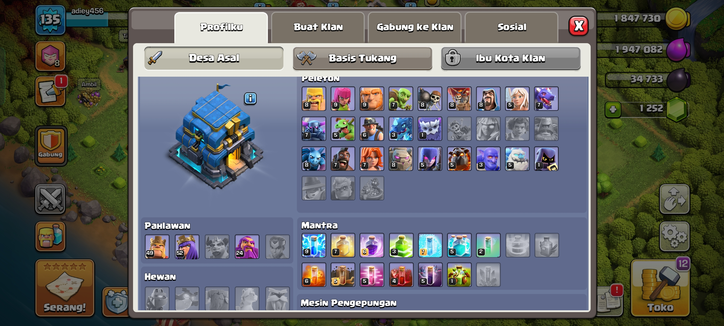 TH 12 HEROES 49-52-24 | GEMS 1252 | CHANGE HAME FREE | WALL GOOD | DEFENSE GOOD | INSTAN DELIVERY