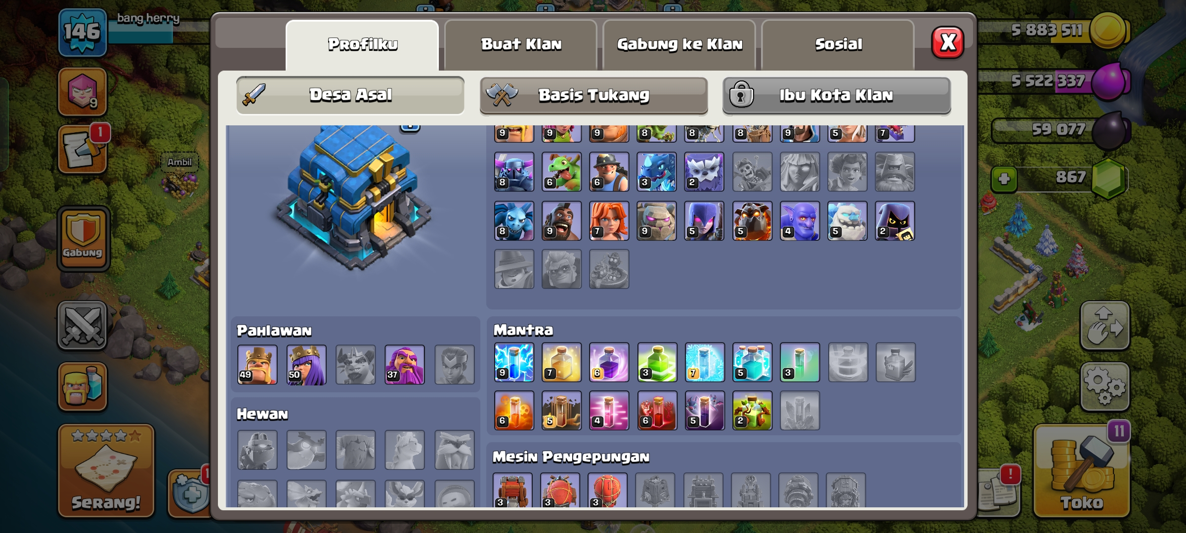 TH 12 XP 146 BK HEROES 49-50-37 | CHANGE HAME FREE | GEMS 867 | WALL GOOD | DEFENSE GOOD| INSTAN DELIVERY