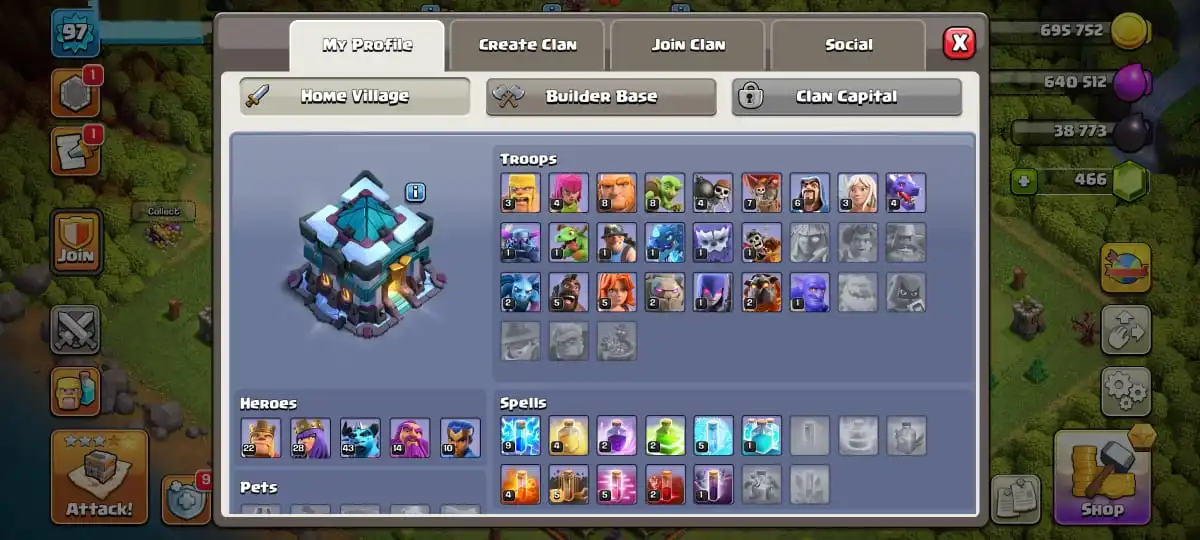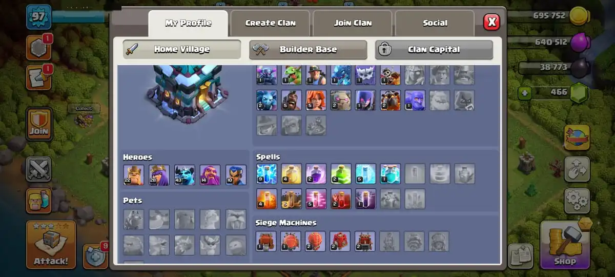 TH 13 SEMI MAX🔥MAGIC ITEMS READY🔥HEROES 22-28-43-14-10🔥FULL ACCESS ACCOUNT🔥