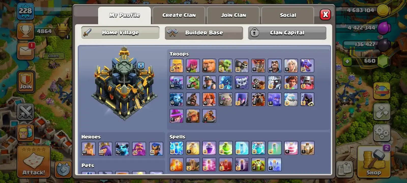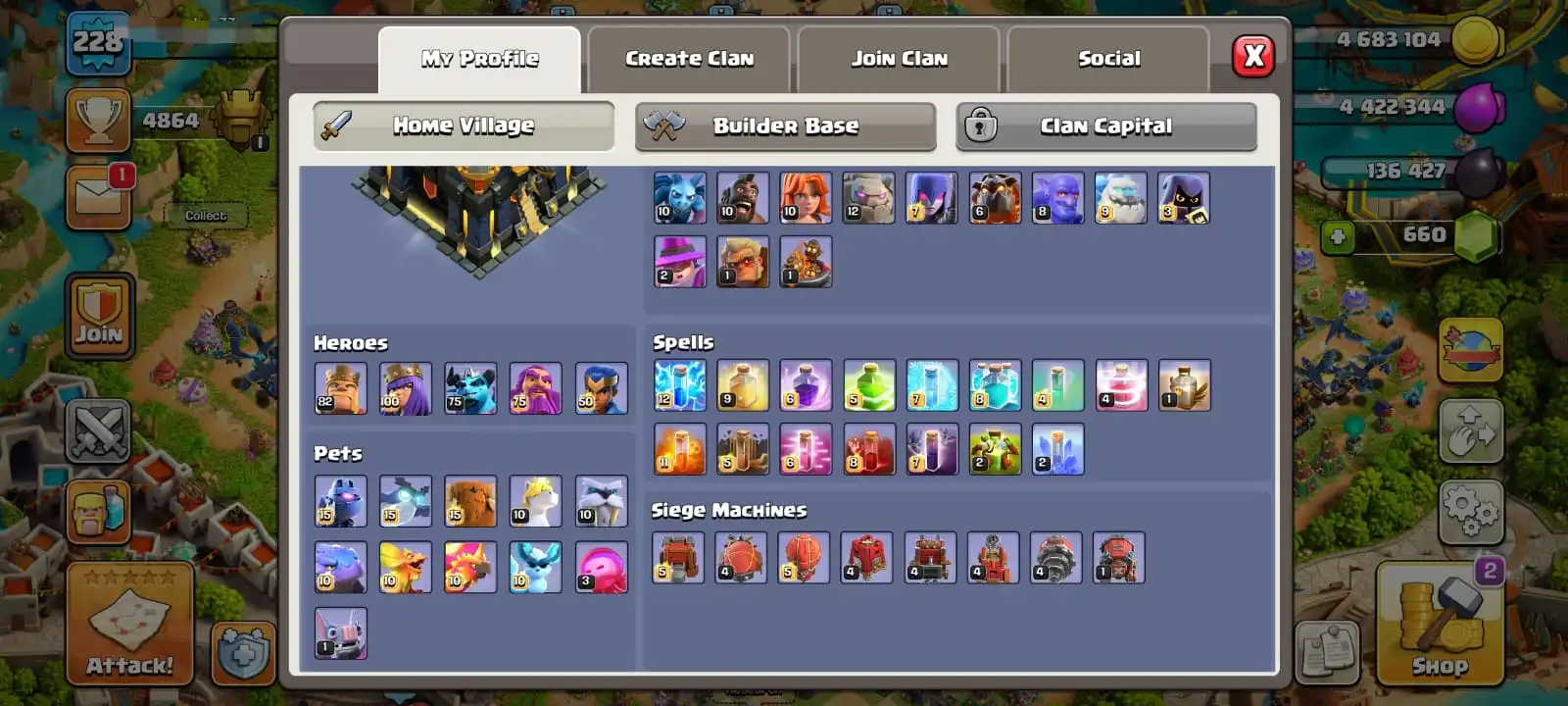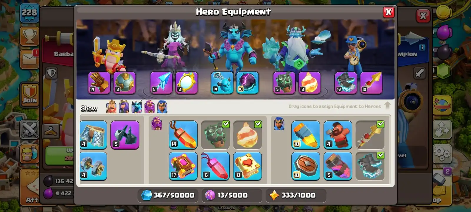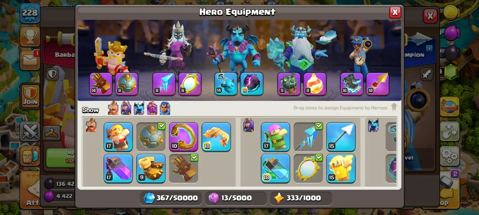 TH 17 ALL MOST MAX [ 21 HERO SKINS ]🔥HEROES 82-100-75-75-50 FULL EPIC EQUIPMENT🔥SUMMER SCENERY🔥MAGIC ITEMS READY🔥MENDALS 131🔥FULL ACCESS ACCOUNT🔥