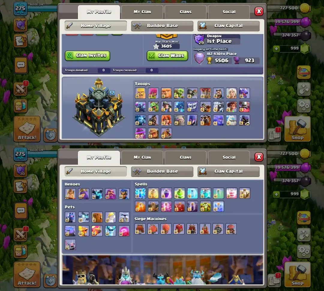 TH 17 BOTH VILLAGE MAX【NOTHING LEFT】⚡ALL FIRE⚡2245 CWL MEDAL⚡276 High XP⚡MAX HELPER HUT⚡NC 500 GEMS⚡13/13 Epic Equipments⚡Black Smith Full Max⚡Rare Statute⚡YA200 YEASIN