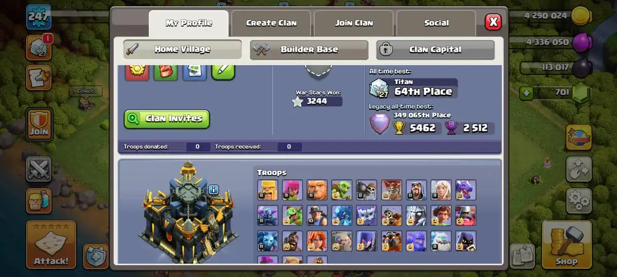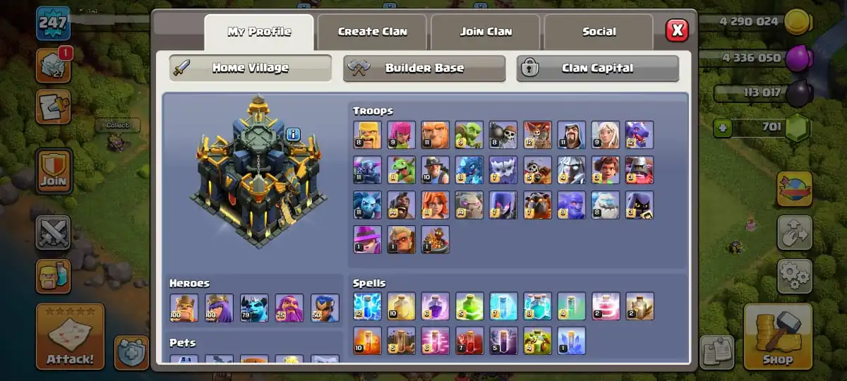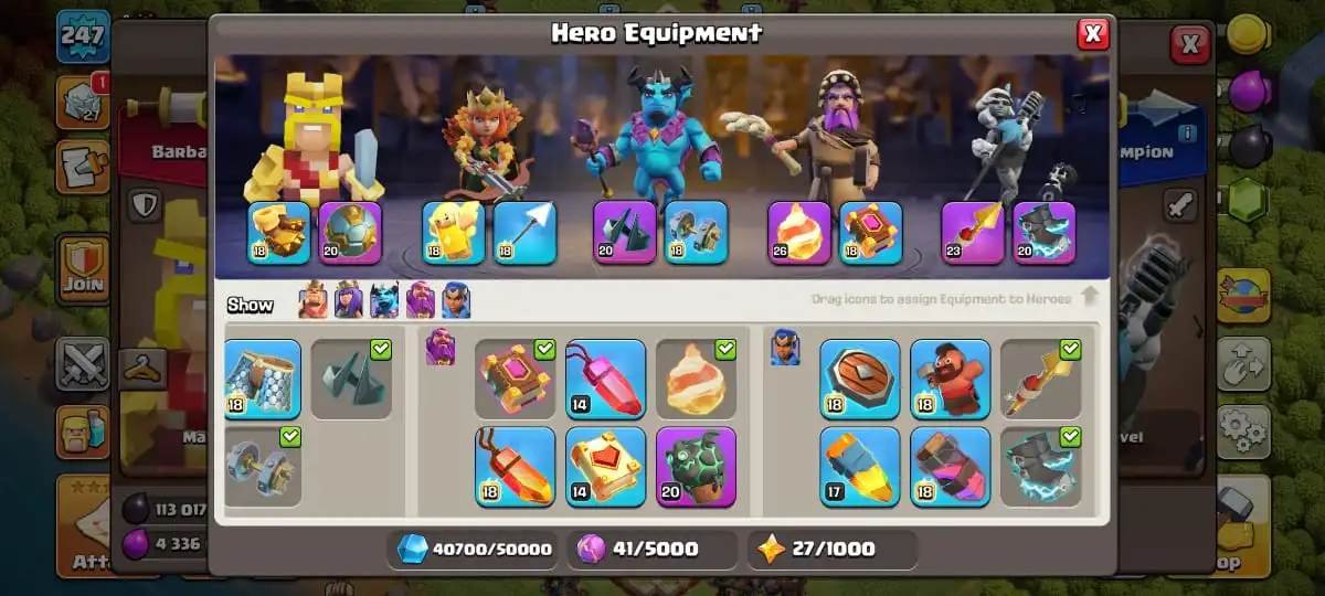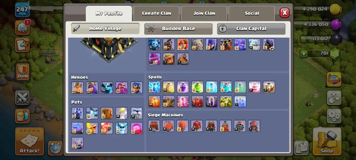 TH 17 MAXED DEFENCE🔥HEROES MAX 100-100-79-75-50 FULL EPIC EQUIPMENT🔥JUNGLE & PIXEL & MAGIC SCENERY🔥MAGIC ITEMS READY🔥FULL ACCESS ACCOUNT🔥