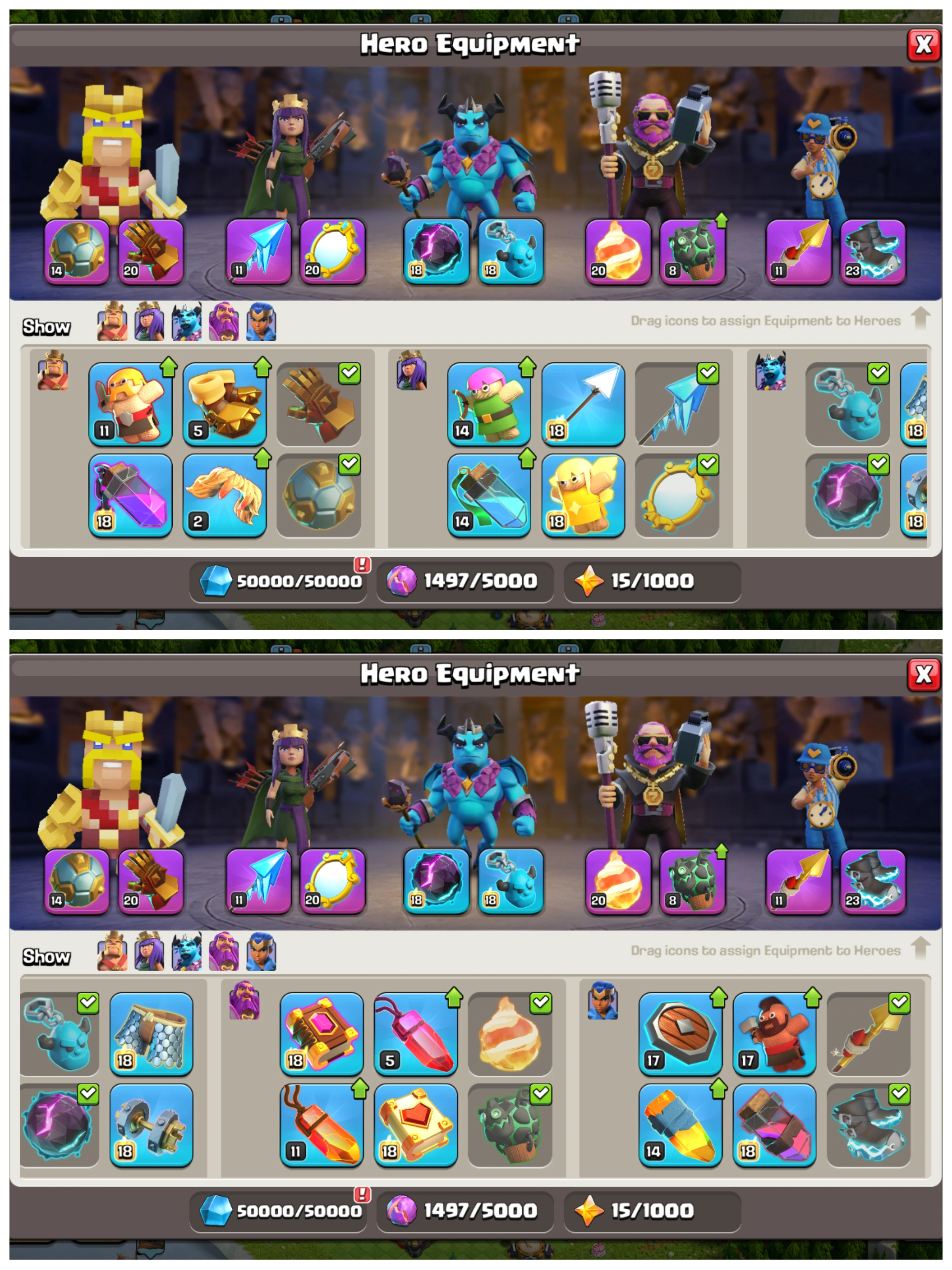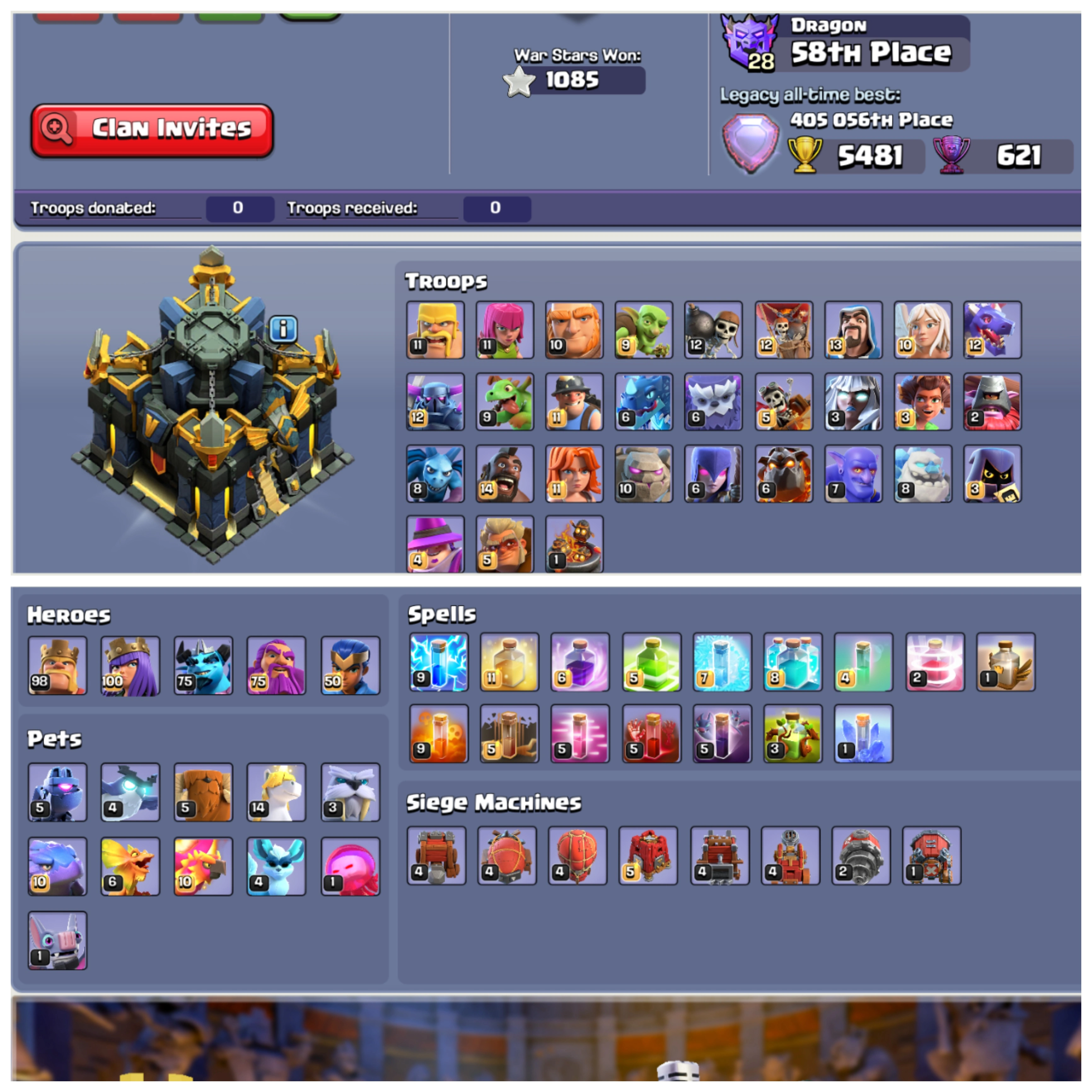 πͺ TH 17 Near Max π 5900 Gems π 11 Heroes Skins 𧬠8 Epic Equipments π Lovely Profile π