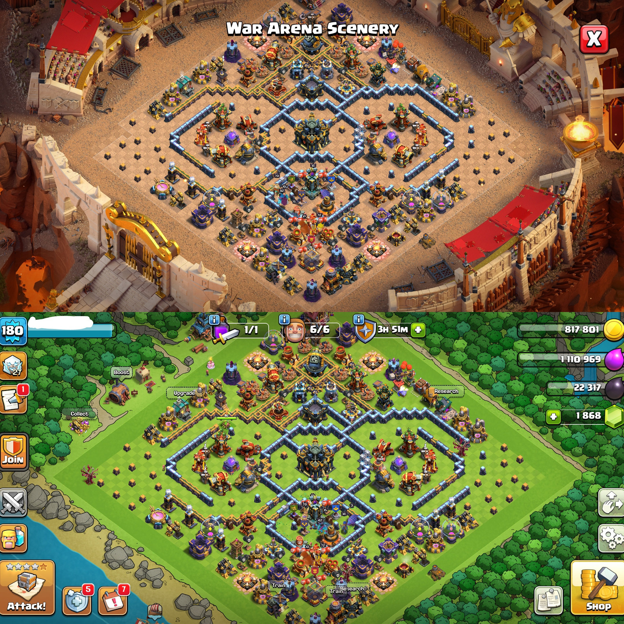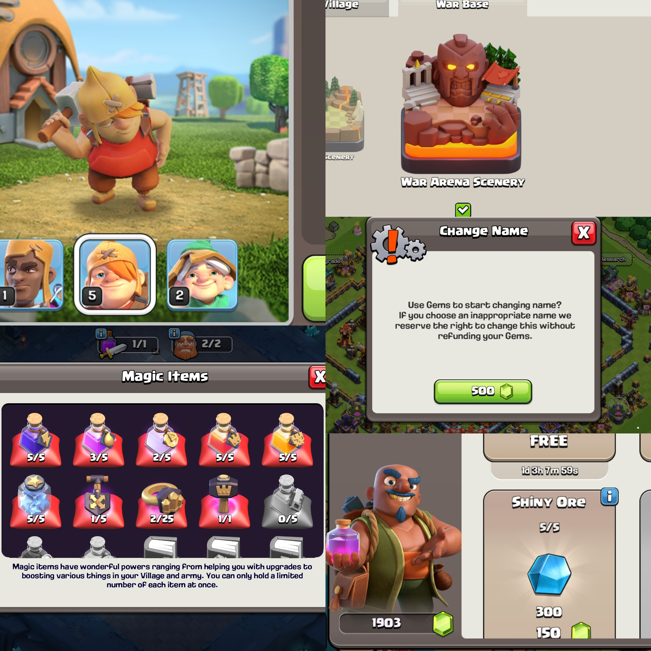 ⭐ TH 17 ⭐ WAR ARENA SCENERY ⭐ 12 EPIC EQUIPMENT ⭐ HEROES K-72 AQ-70 MP-42 GW-37 RC-18 ⭐ NAMECHANGE 500 ⭐ 1900 GEMS