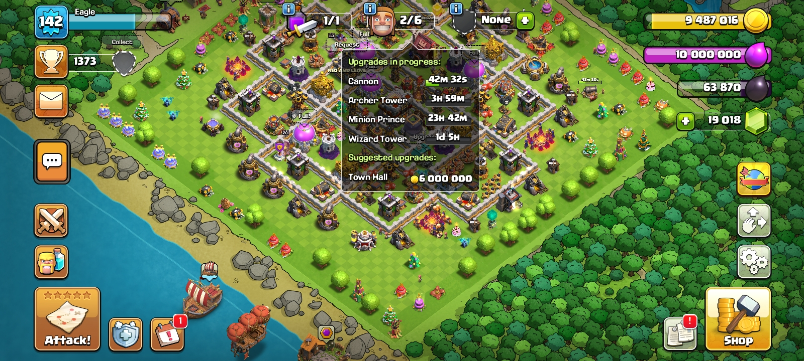 🌟TH11 FULL MAX🔥19000 GEMS💎6th BUILDER UNLOCKED💖FULLY LOADED STATUES AND OBSTACLES🏆FREE NAME CHANGE💫INSTANT DELIVERY🚚