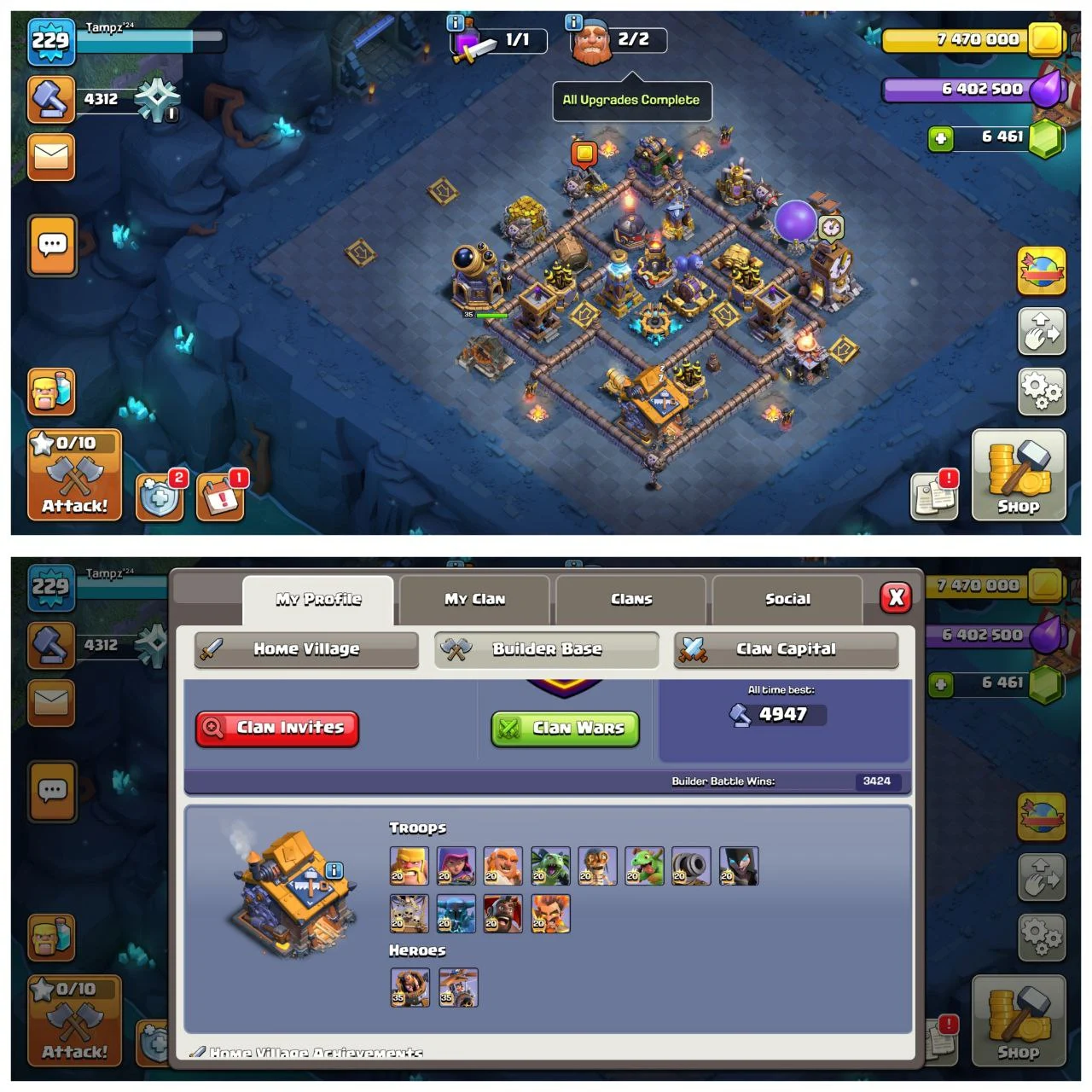 Th15 Full Max [Both Side 100%]š„10 Epic Equipments š„6466 Gems Availableš„BH-Max Fullš„10 Heros Skinš„instant Deliveryć14ć