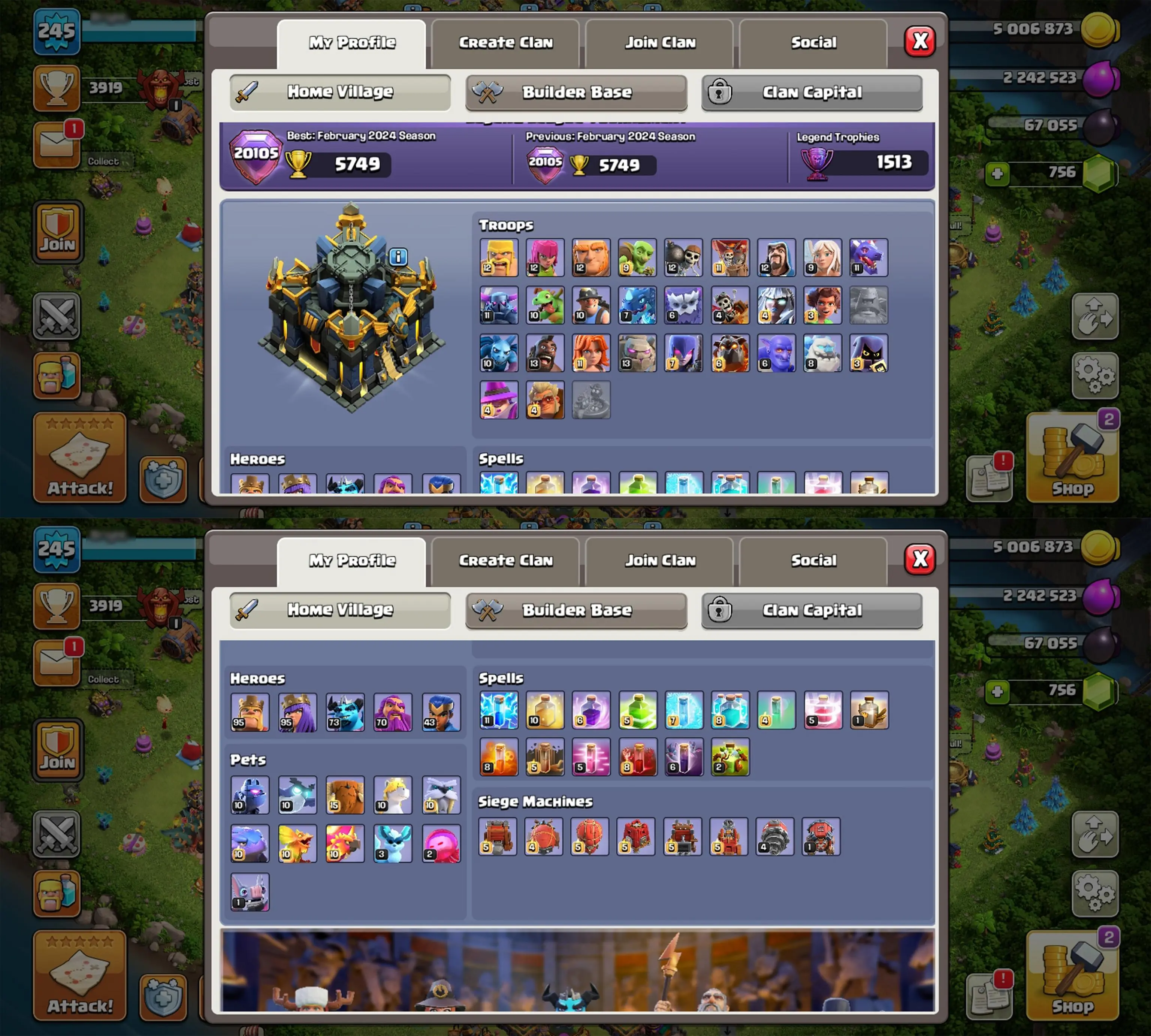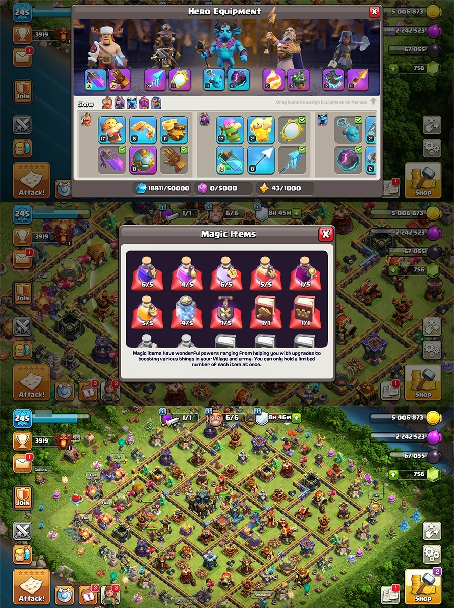 🔥TH17🔥63%Max🔥Lv245🔥EQUIPMENTS 57%🔥6 SeigeMachine Max🔥5PetMax