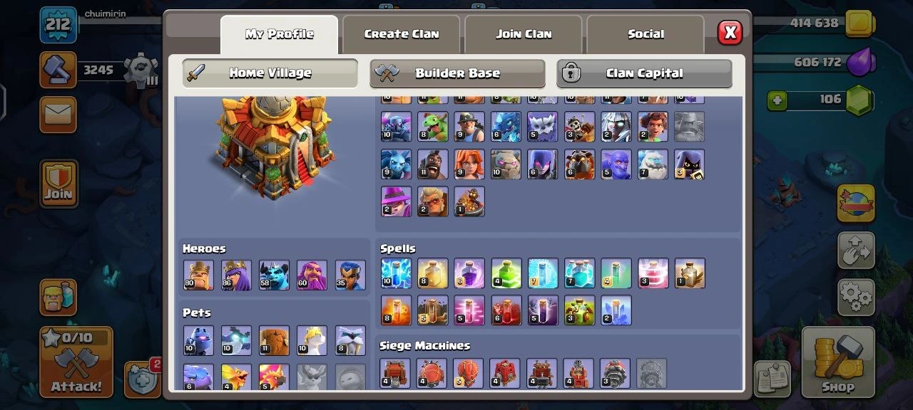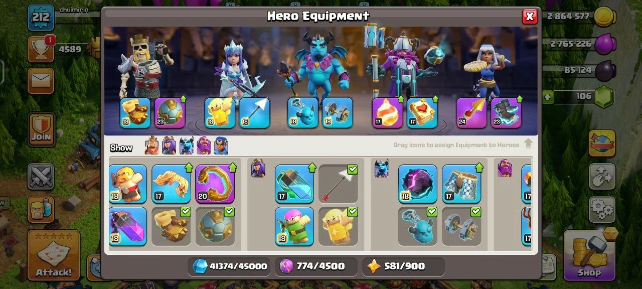 {ULTIMATE MAXED EQUIPMENTS }🔥 TH 16 NEAR MAX 💠 KING 80 | QUEEN 86 | WARDEN 60 | RC 35 ⭐ FULL HERO EQUIP ⚡ ALL PETS UNLOCKED 🎁 STACKED MAGIC ITEMS 🏆 3245 BUILDER / 4589 MAIN ✨ FREE NAME CHANGE 🚀