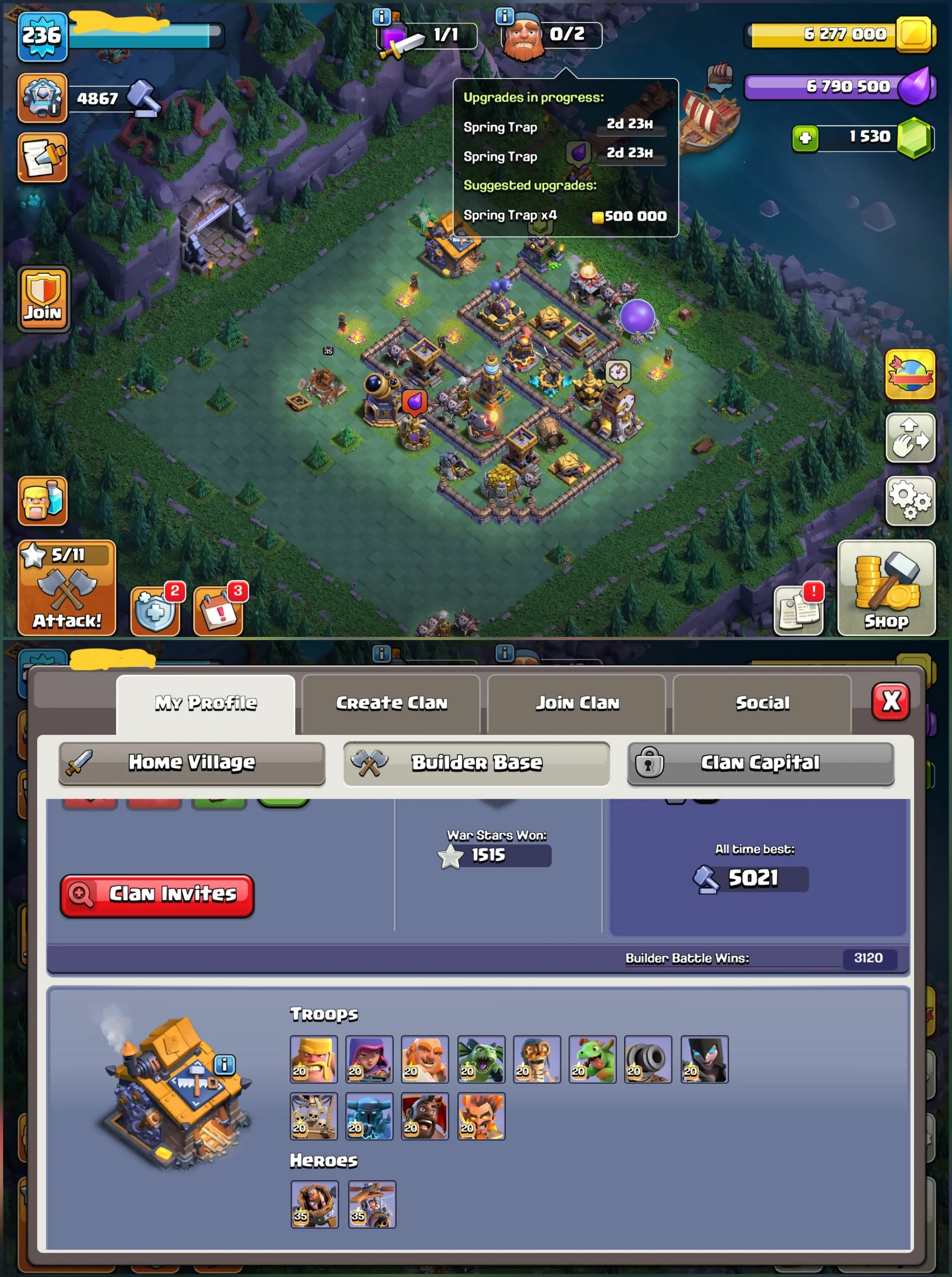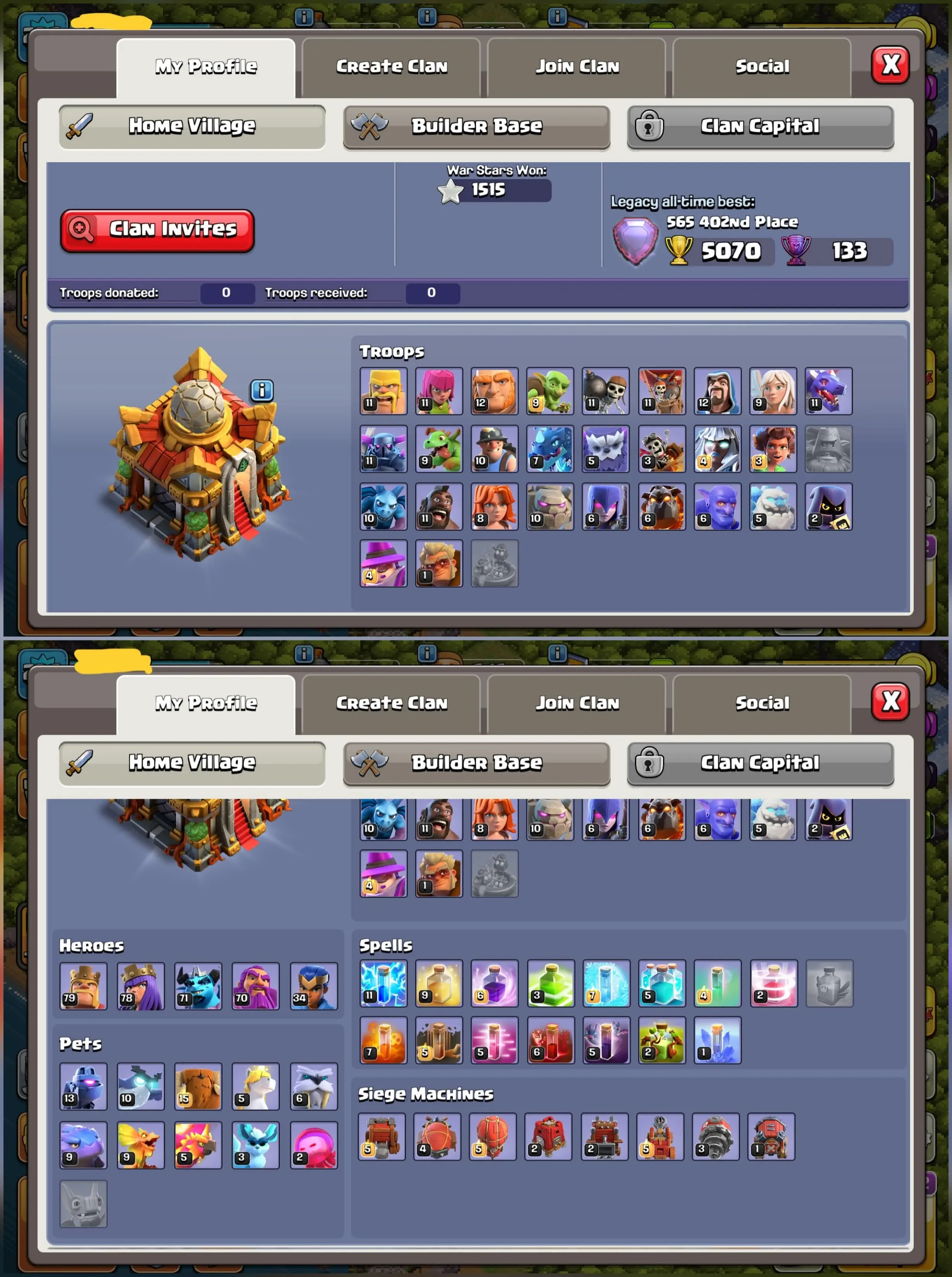 [ USA LOCAL ] 🤯 CRAZY TH16 ⭐ XP 236 ⚔️ 3 EQUIPMENTS MAX 🏆 1.5K WARSTARS 🧱 BUILDER BASE MAX 🏅 LEGEND HITTED 🦸 HEROES:- BK79 👑 AQ78 🛡️ MP71⚡ GW70 🔥 RC34