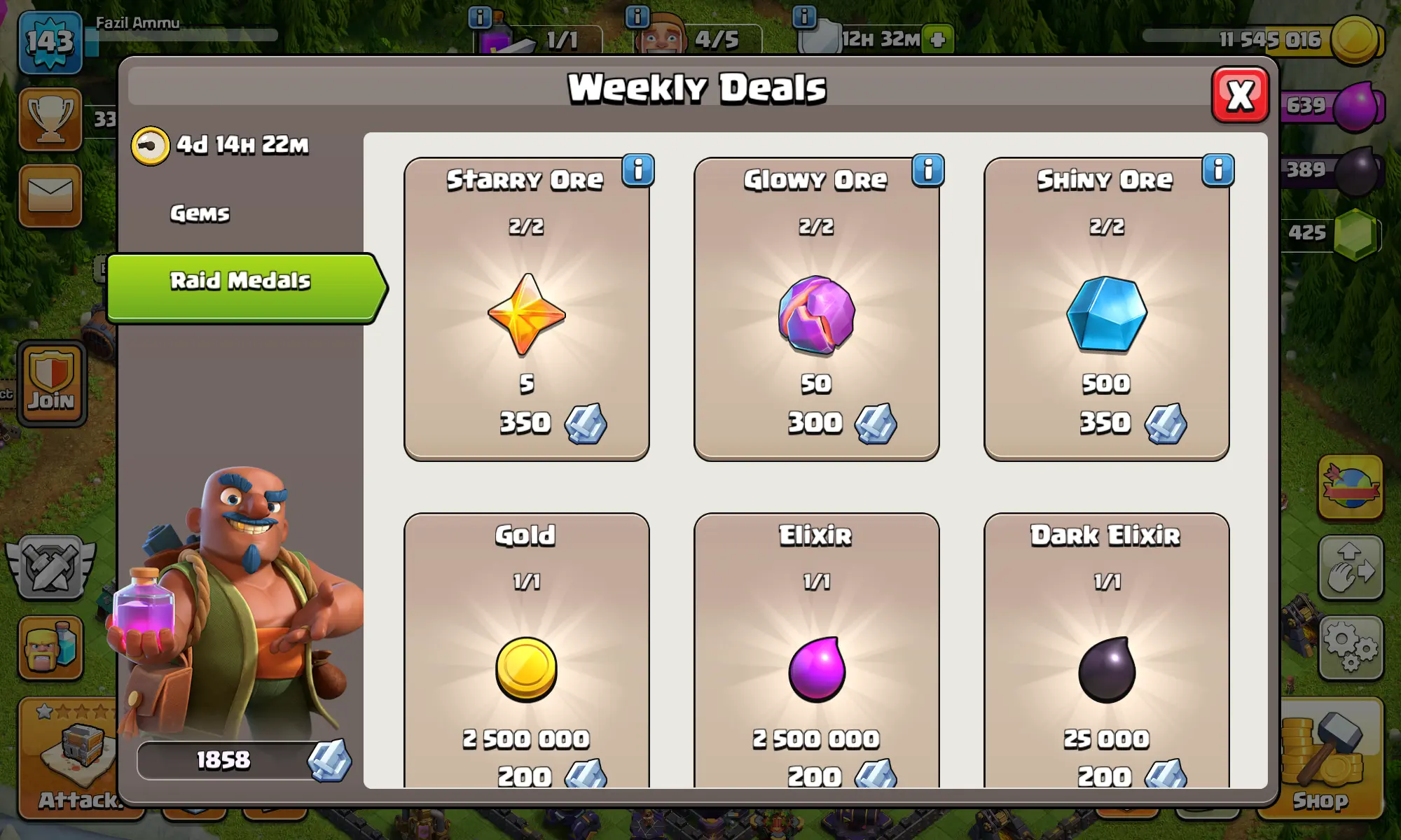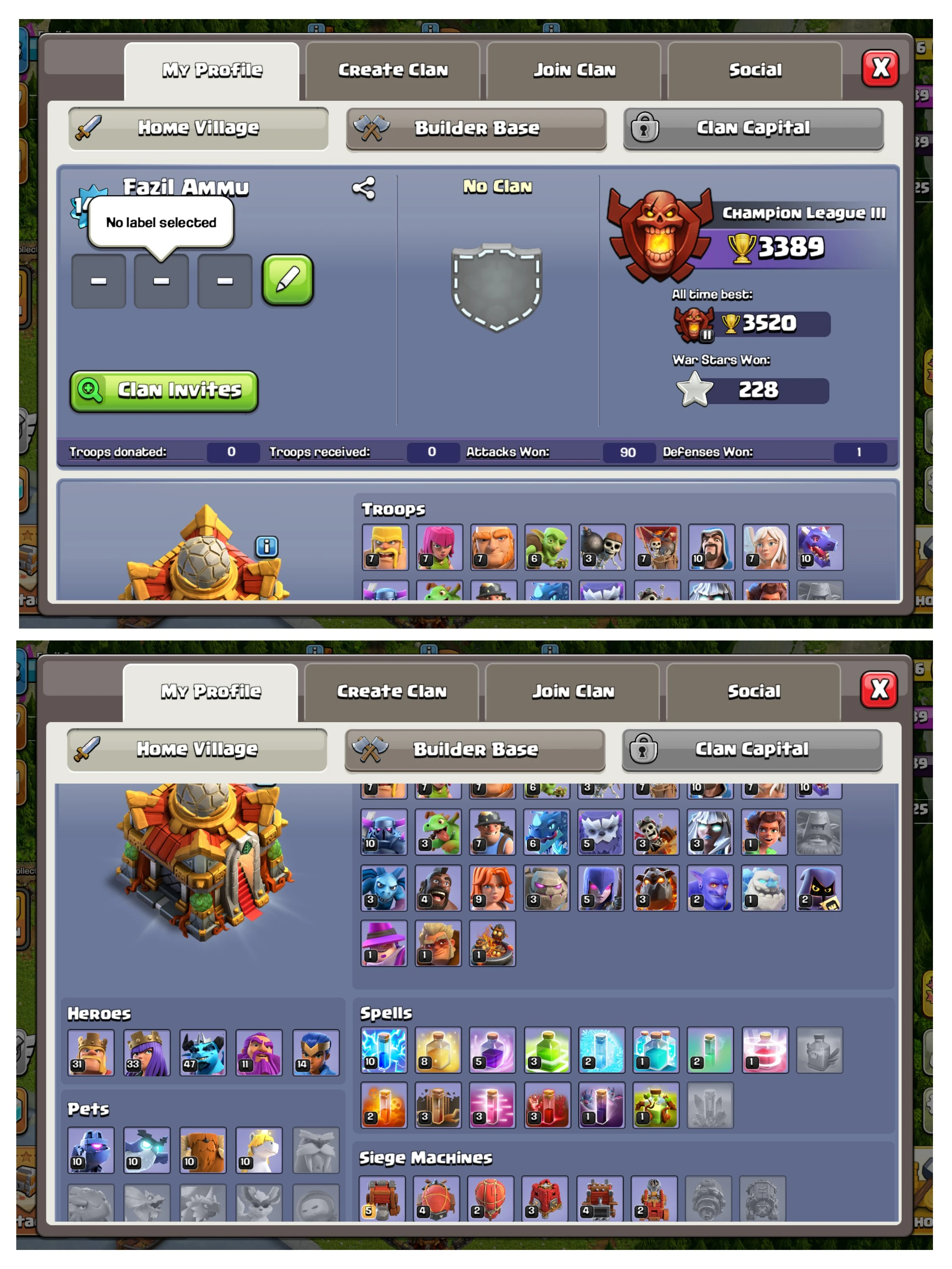 300 โจ Raid๐1900 โญ War228 ๐ Trophies3250 ๐๐ช Magic & Epicโก Items Ready ๐ Name Change Available ๐