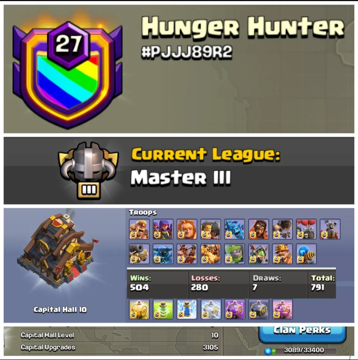 😳[MASTER 3 + CC 10] 💥NAME : JBD CLAN 🥶 LEVEL : 28.8 ☠️ WARLOG W-L-D : 494-243-16 🌸