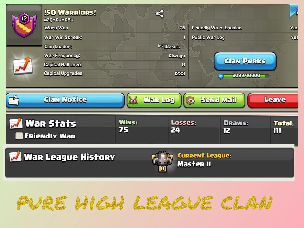 Clan name- Chinese __Clan LvL- 22+ __ Master 3 __Capital hall- 3 __ Win- 175 _loss- 414 __ Troops max __ Rear Name __fast Delivery