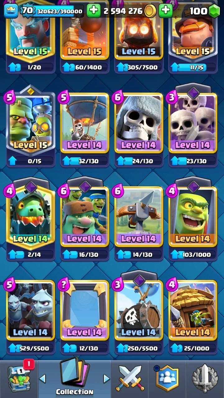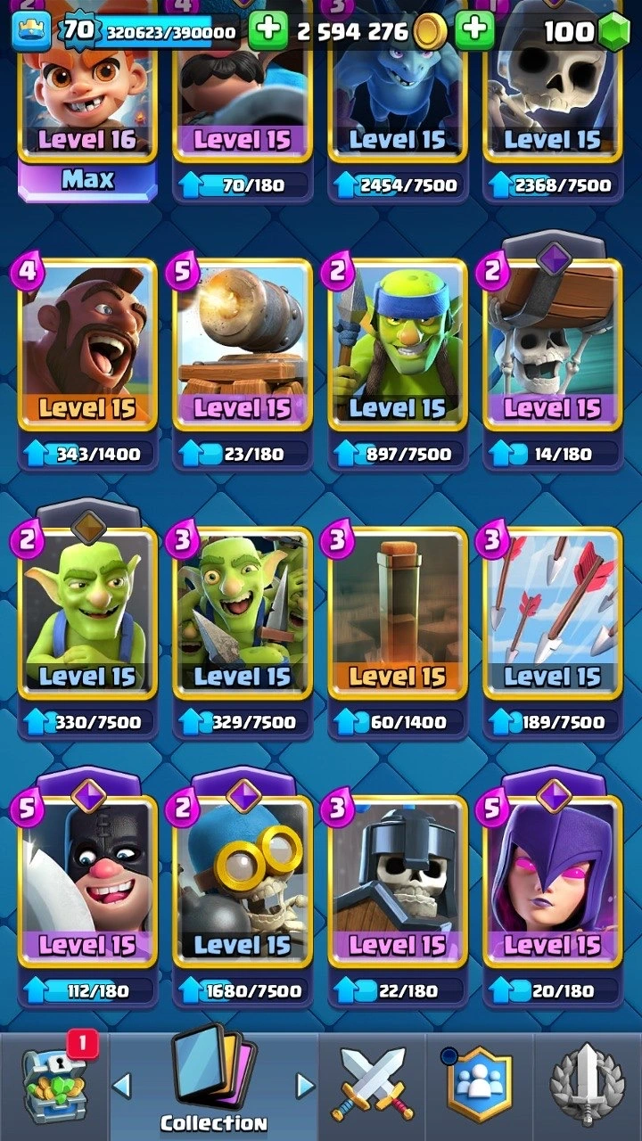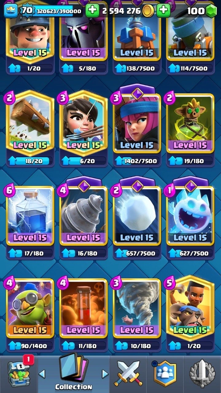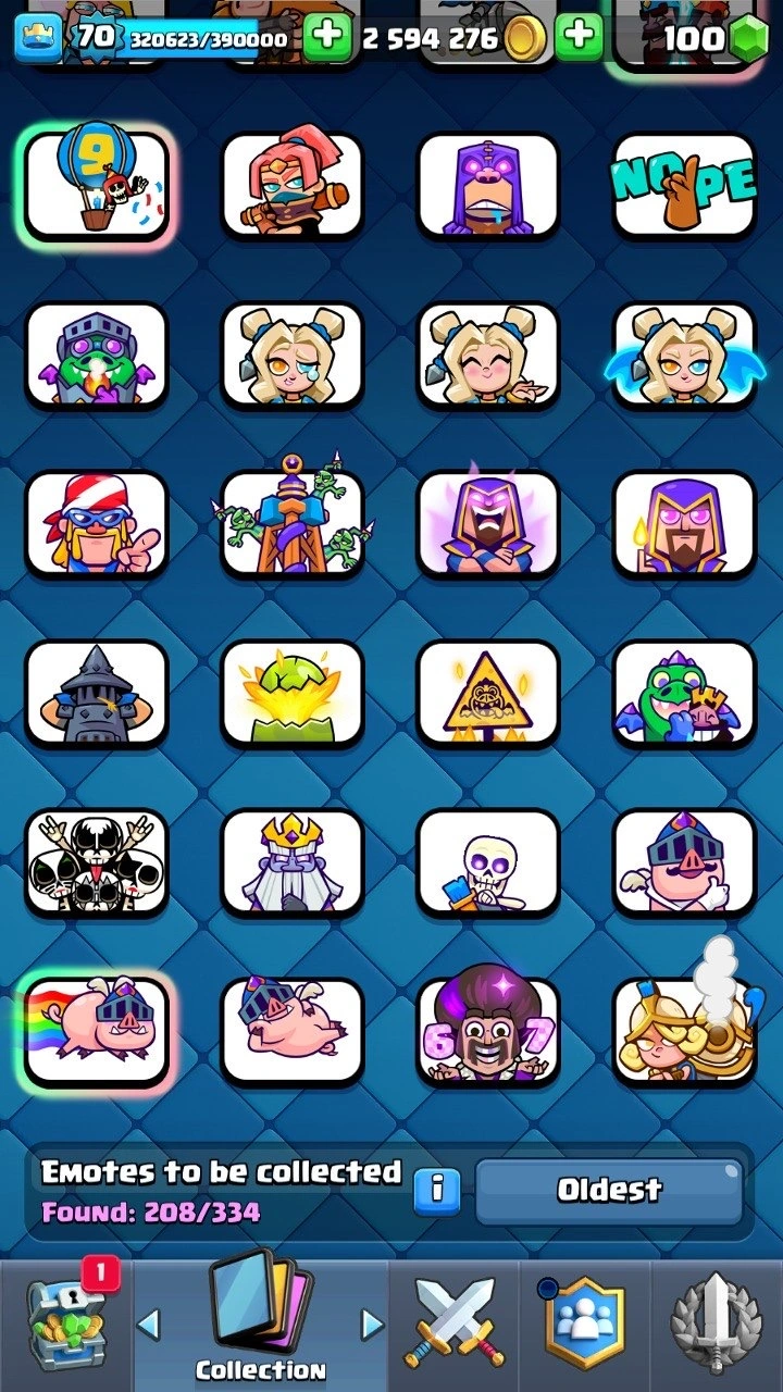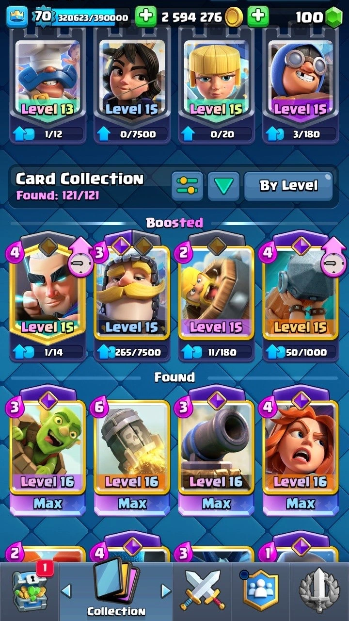 10 120 Trophies 🏆 XP level 70 | 25 Evolutions ⸱ 2 Heroes 😈 | 208 Emotes ! | 10x Classic Challenge BADGE ✅ 47+ level 15 cards