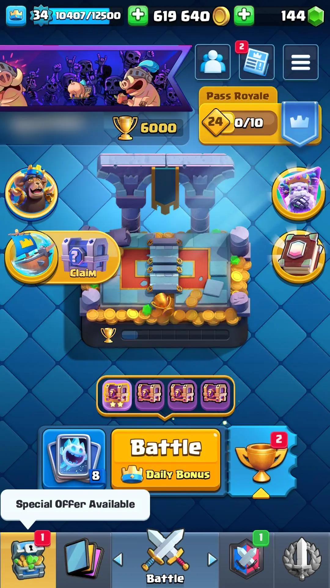 2 CHAMPIONS | KT 12 | 34 LVL | 6000 Trophy | 2 EVO | 0 ELITE | 0 MAX CARDS | 19 Legendary | 33 EPIC | FULL ACCESS|IOS/ANDROID|SCREENSHOTS INSIDE
