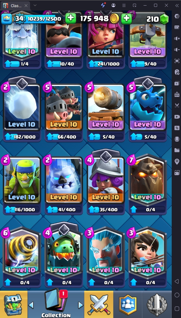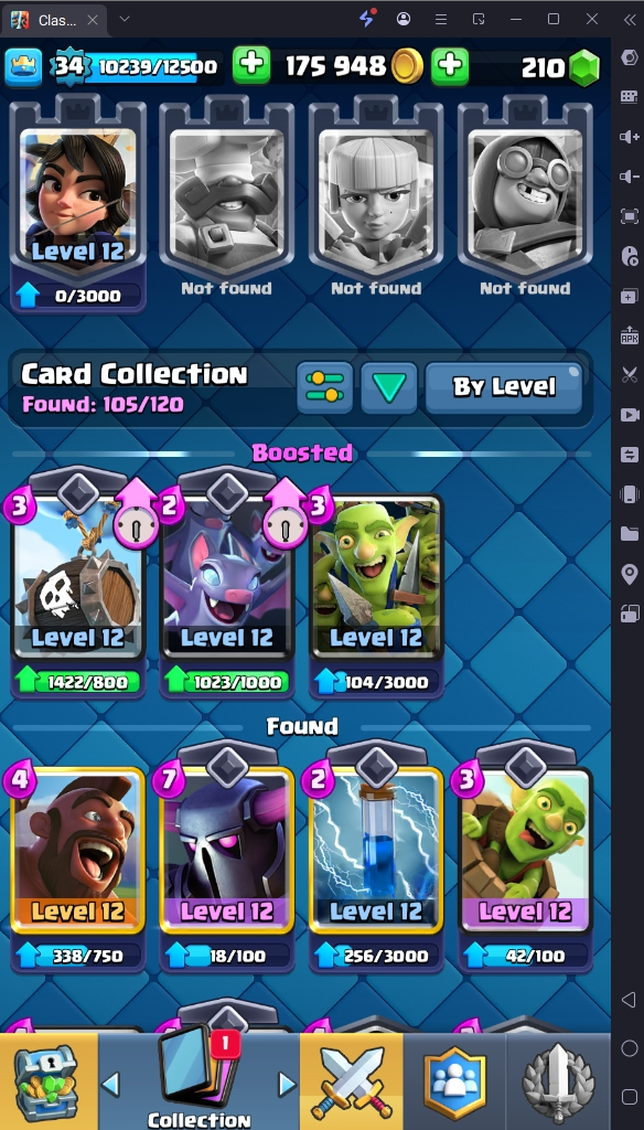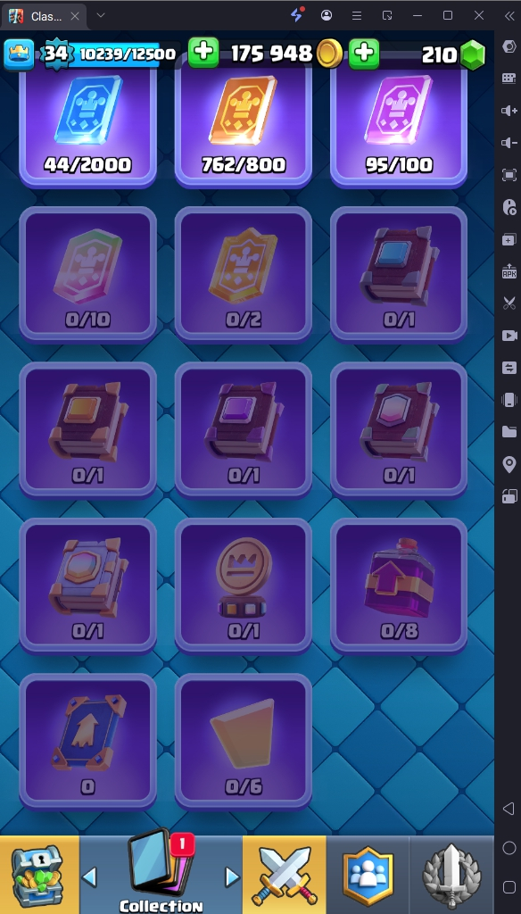 5000 TROPHY 🏆 34 LVL 💯 KT 12 👑 105 CARDS ♦️ 0 MAX CARDS 👑 0 ELITE CARDS 🔮 0 EVO 💯 EMOTE 13 🎭 #8PU8RUVPY ⸱ TAG ACCOUNT ♥️