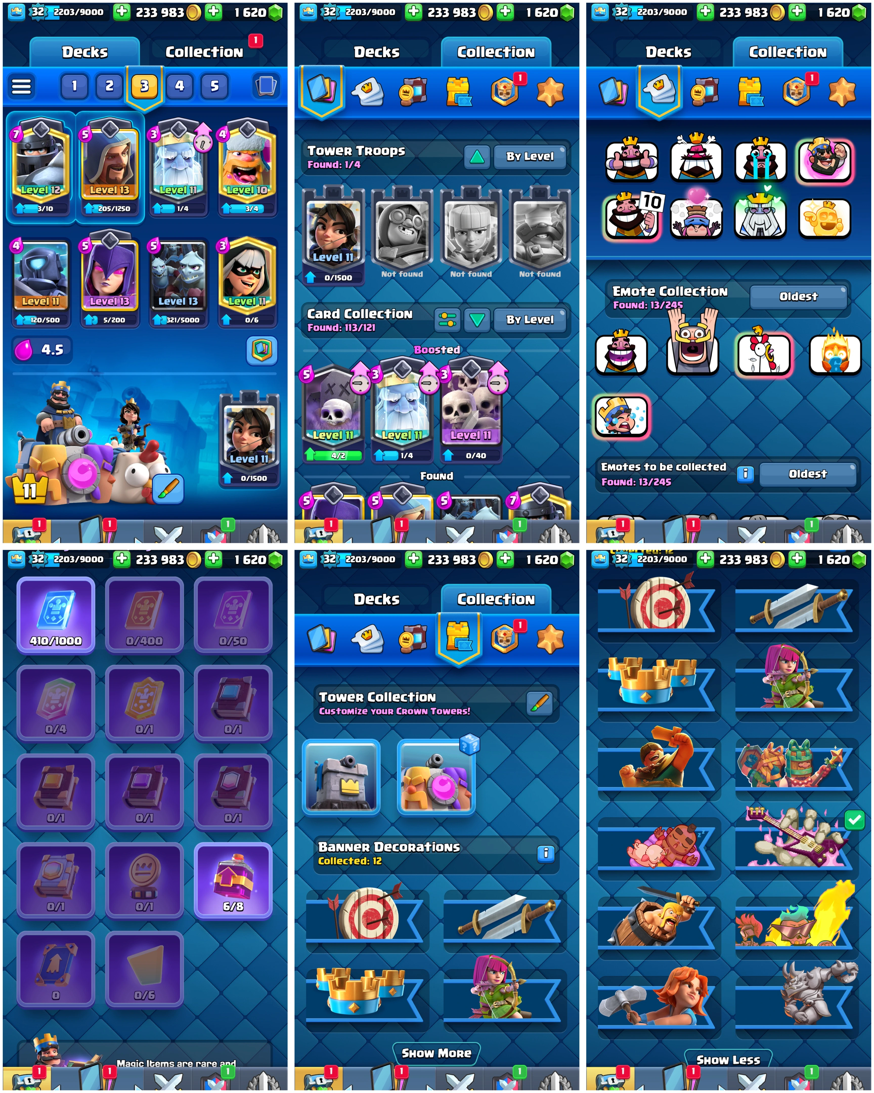 8 Year Old Cr Account ๐ 6735 Trophies ๐| Level 32 ๐ฅ | King Tower 11 ๐ | Arena 18 โ๏ธ | Emote 13 ๐ Cards 113 ๐ Instant Delivery ๐  Lifetime Access โ