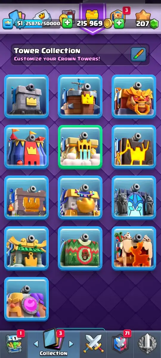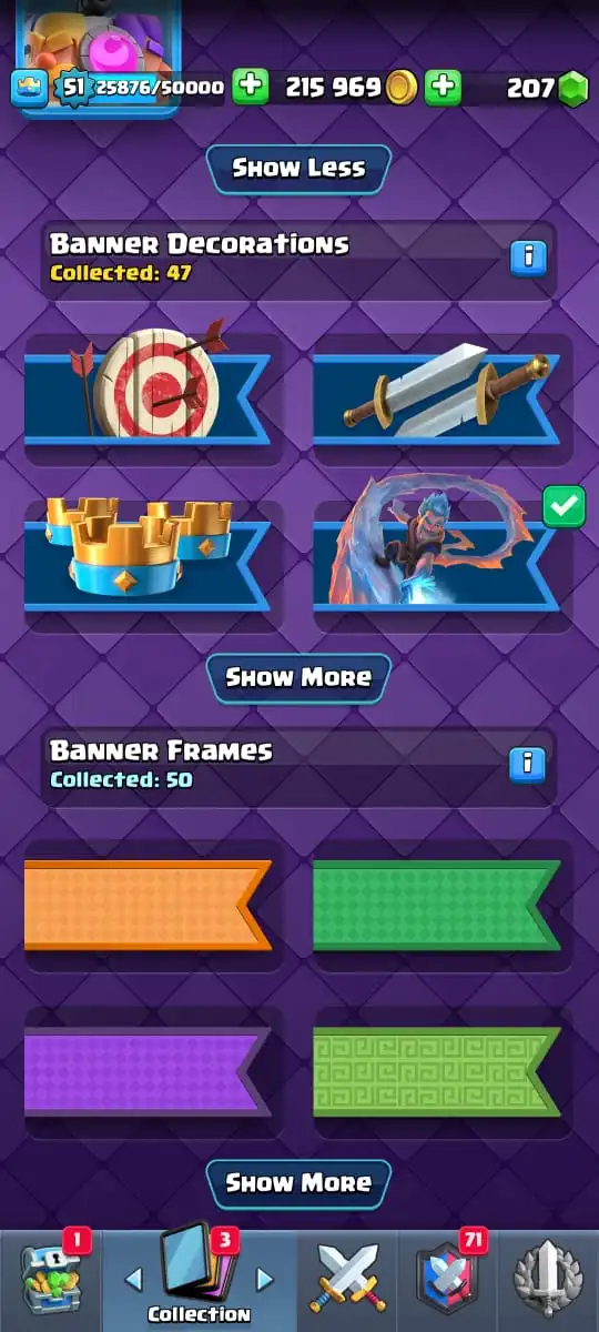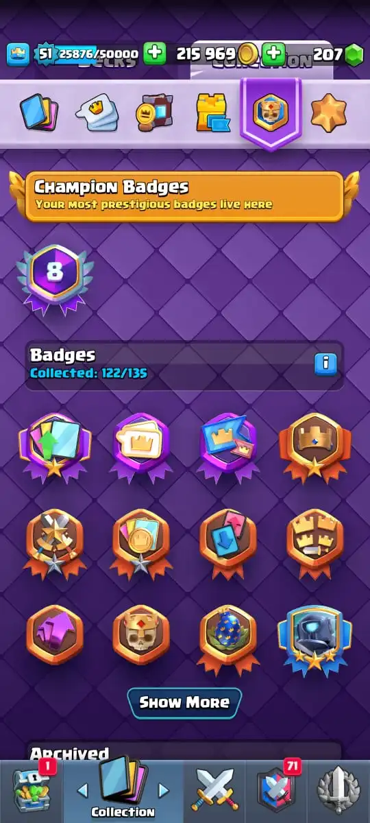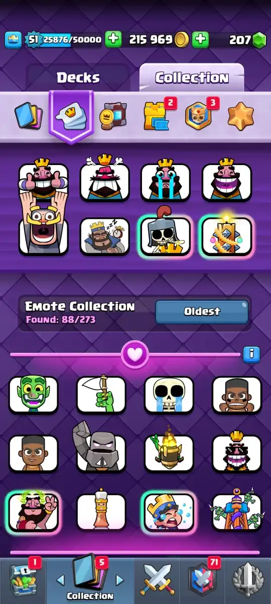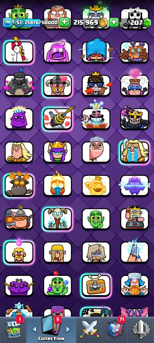 😂 88 EMOTES | 🏰 13 TOWER SKINS🎖️ 122 BADGES | 🖼️ 50 BANNERS👑 KT 14 | 🏟️ ARENA 24 | 🎯 LEVEL 51