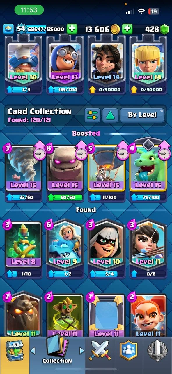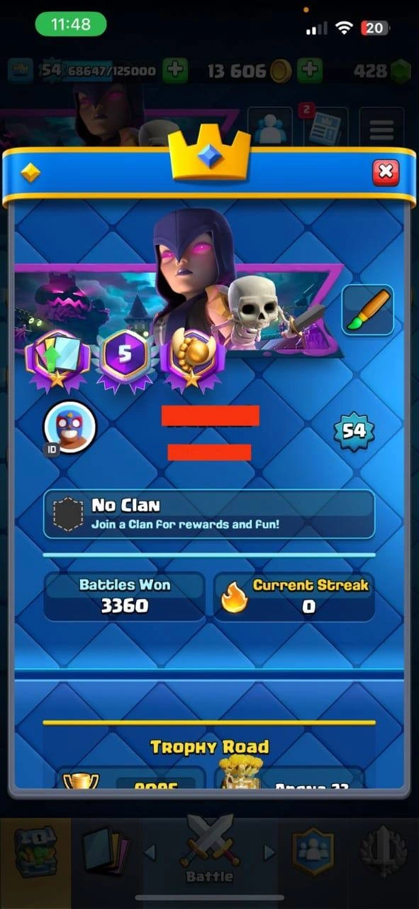 9095 Trophies | XP Lvl 54❗️| 24 MAXED CARDS❗️| 7 ELITE LEVEL CARD ❤️🔥| 5 EVOLUTIONS📈 | 54 EMOTES | 100% safe account | instant delivery