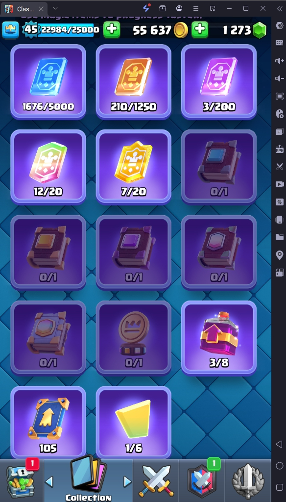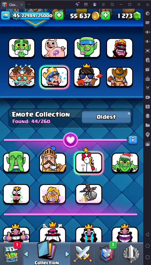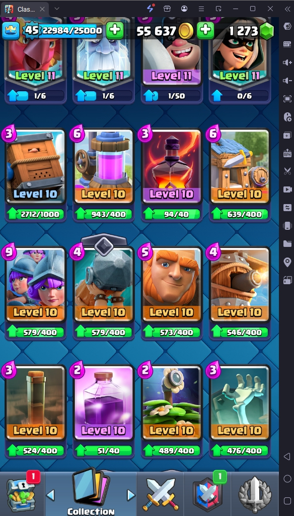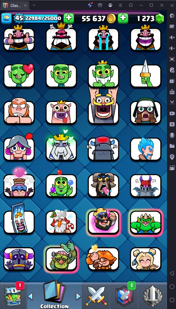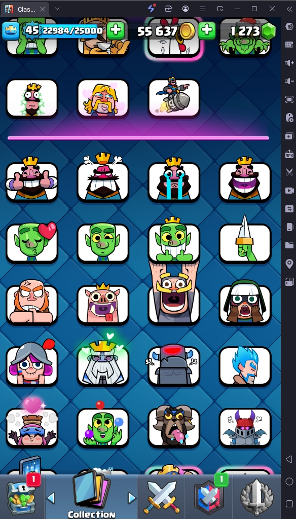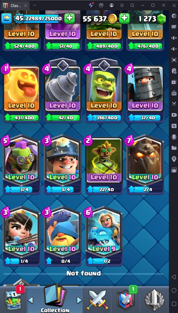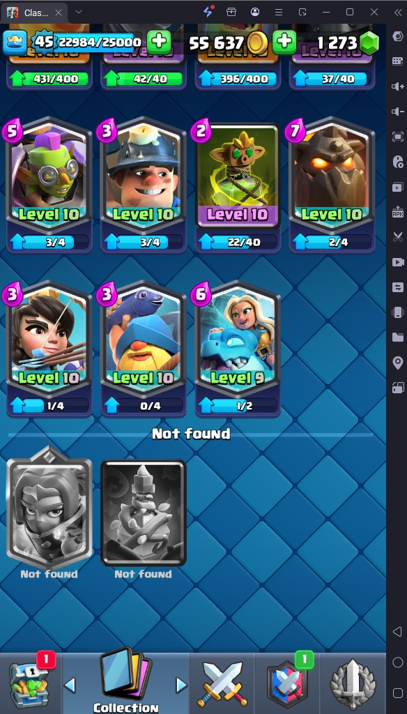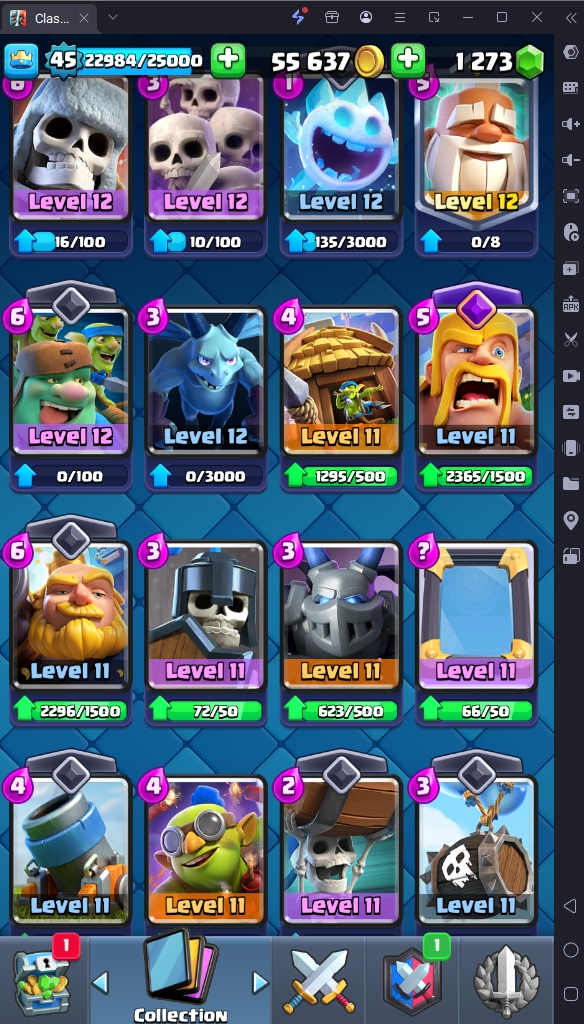 9170 TROPHY 🏆 45 LVL 💯 KT 14 👑 119 CARDS ♦️ 7 MAX CARDS 👑 1 ELITE CARDS 🔮 7 EVO 💯 EMOTE 44 🎭 #PVR2VR0PL ⸱ TAG ACCOUNT ♥️