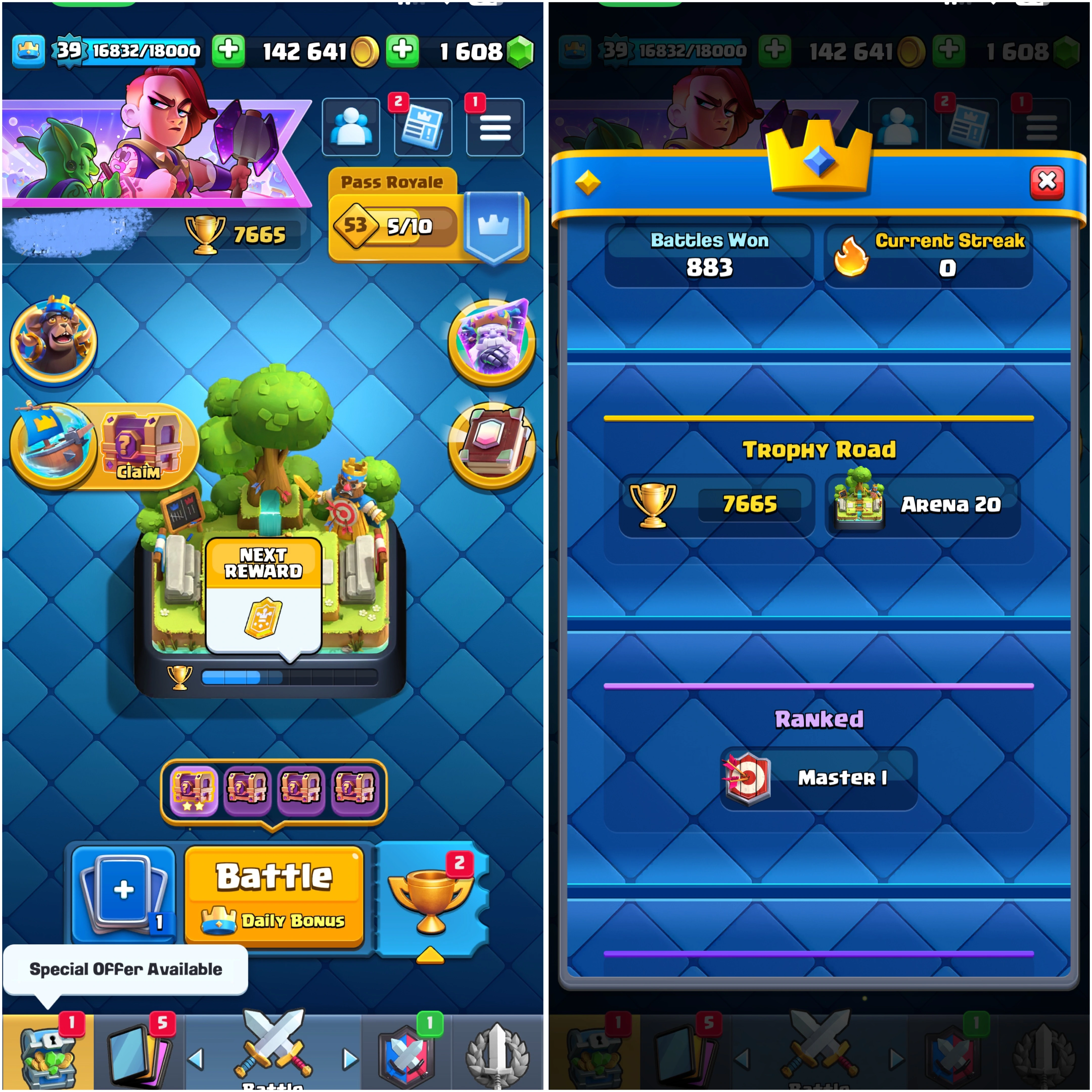 Buy CR And Get 41k BS Account Free ๐ 7665 Trophies ๐| Level 39 ๐ฅ | King Tower 13 ๐ | Arena 20 โ๏ธ | Emote 19 ๐ Cards 118 ๐ Instant Delivery ๐ Lifetime Access โ