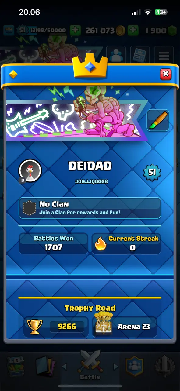 🔥 Cheapest 🔥 CR Lv.51 🔥 Change Name ON 🔥 Arena 23 🔥 9266 Trophies 🔥 KT 14 🔥 7 Evo Cards 🔥 11 Max Cards & 6 Elites 🔥 55 Emotes 🔥 6 Tower Skins 🔥 [F2743] 🔥