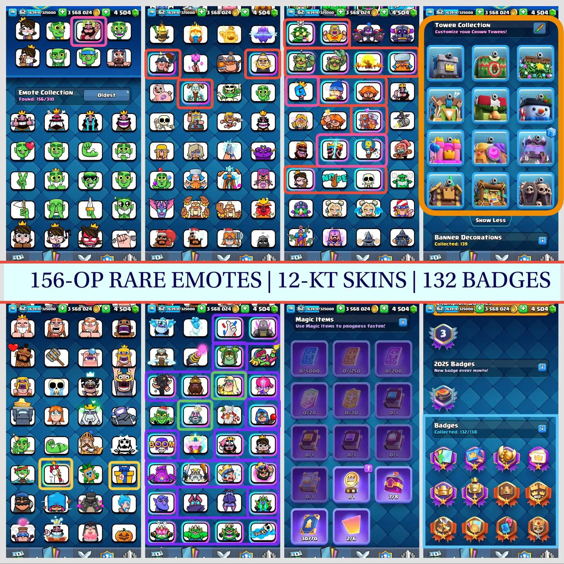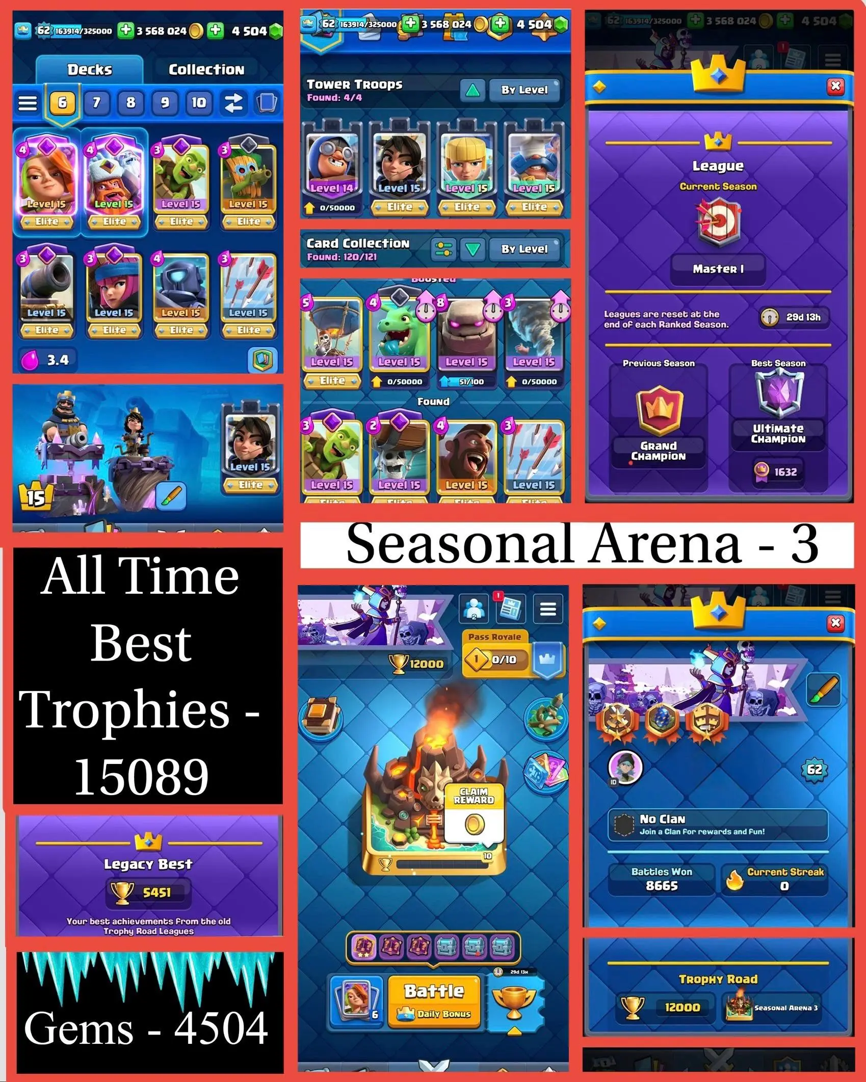 [CJ]💥SEASONAL ARENA-3💥ACC🏆PREMIUM ACCOUNT👑12000 TROPHIES✨101 MAX CARDS💎32 ELITE CARDS⚠️18 EVO CARDS⚡RARE EMOTES🗼EXCLUSIVE TOWER SKINS🔥INSTANT DELIVERY🚀