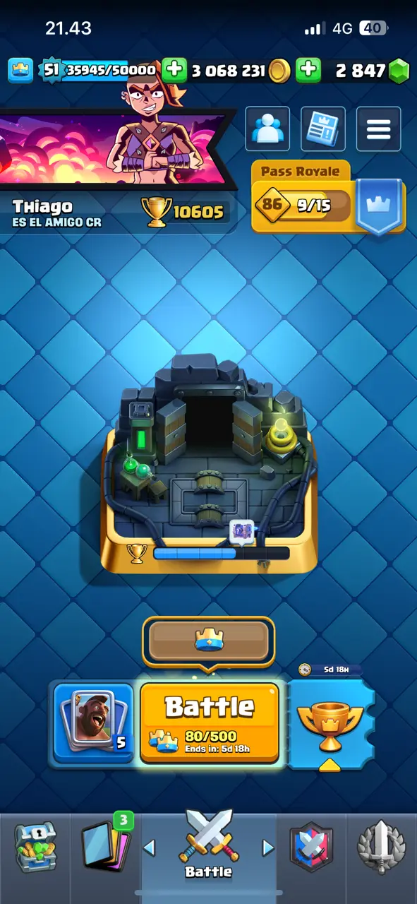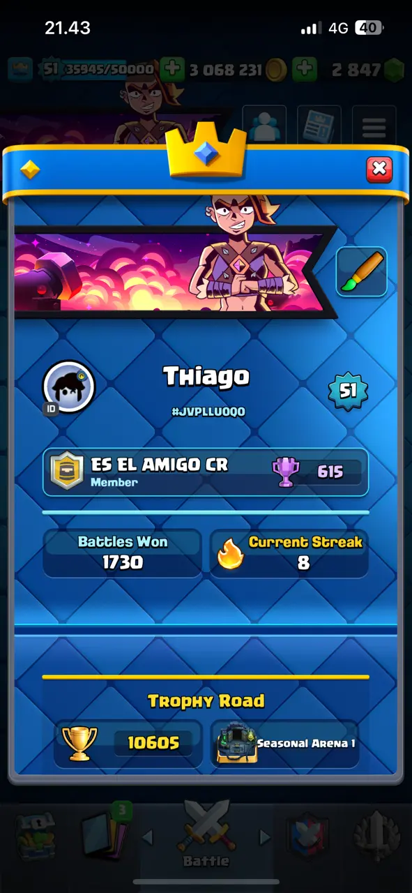 🔥 Combo CR+BS 36 Max 🔥 CR Lv.51 🔥 Free Change Name 🔥 Seasonal Arena 1 🔥 10605 Trophies 🔥 KT 14 🔥 11 Evo Cards 🔥 11 Max Cards & 3 Elites 🔥 83 Emotes 🔥 7 Tower Skins 🔥 [F2737] 🔥