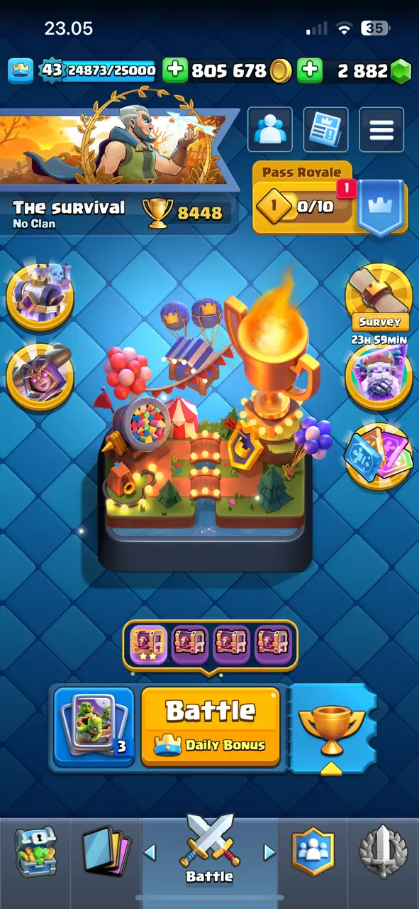 🔥 Combo CR+COC TH 14 Max+BS 45k Cups 🔥 CR Lv.43 🔥 Free Change Name 🔥 Arena 21 🔥 8448 Trophies 🔥 KT 14 🔥 7 Evo Cards 🔥 8 Max Cards & 1 Elite 🔥 39 Emotes 🔥 4 Tower Skins 🔥 [F2663] 🔥