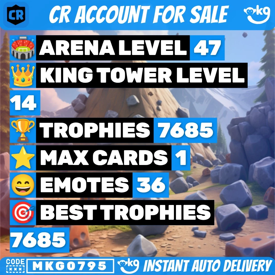 ⚡ Clash Royale 🏆 7685 Trophies 💣 Level 47 👑 King Tower 14 🎴 119 Cards 🎭 Emotes: 36 🚀 Instant Delivery 🔐 Full Access !MKG0795